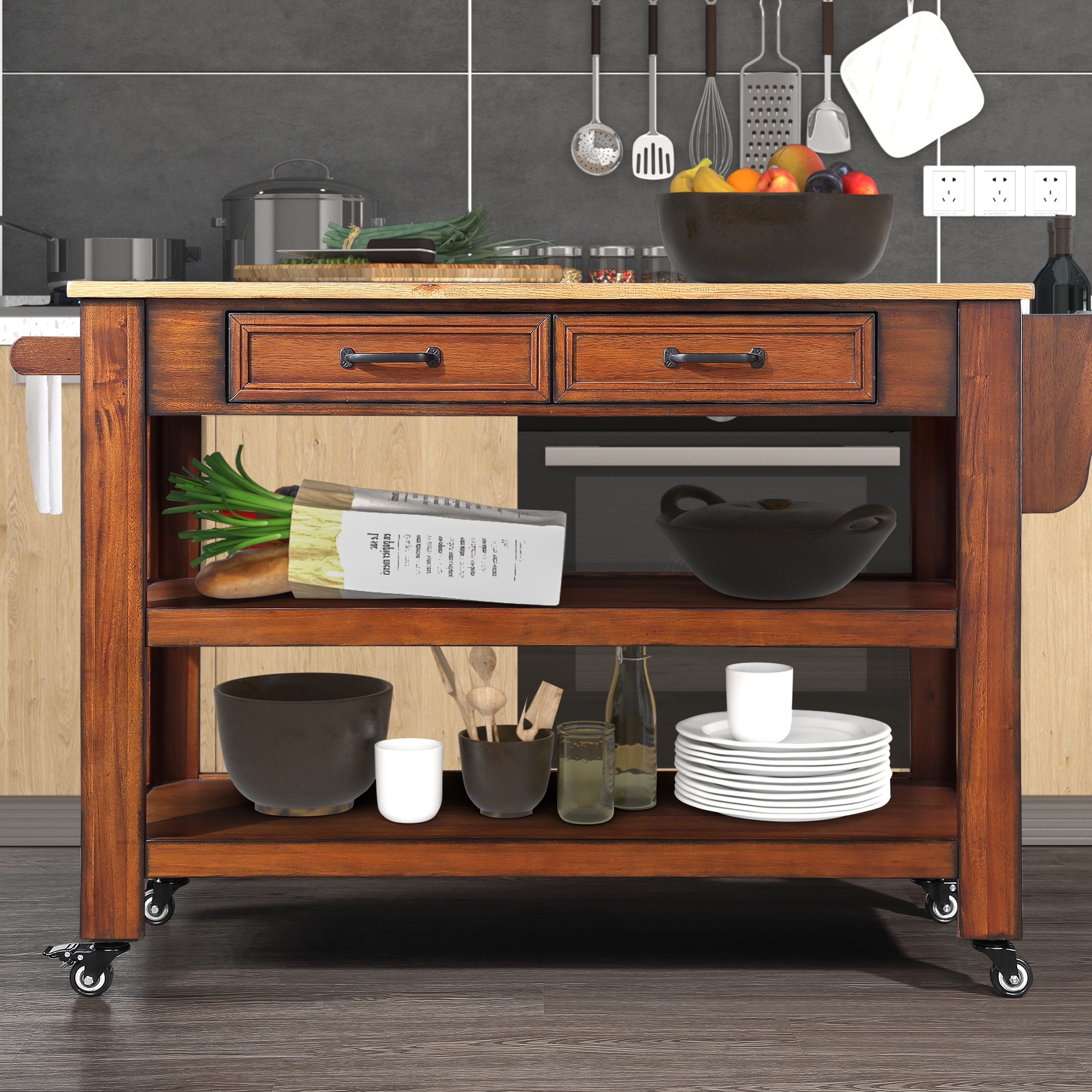 57 inch Rolling Kitchen Island Cart with with Solid OAK Wood Top