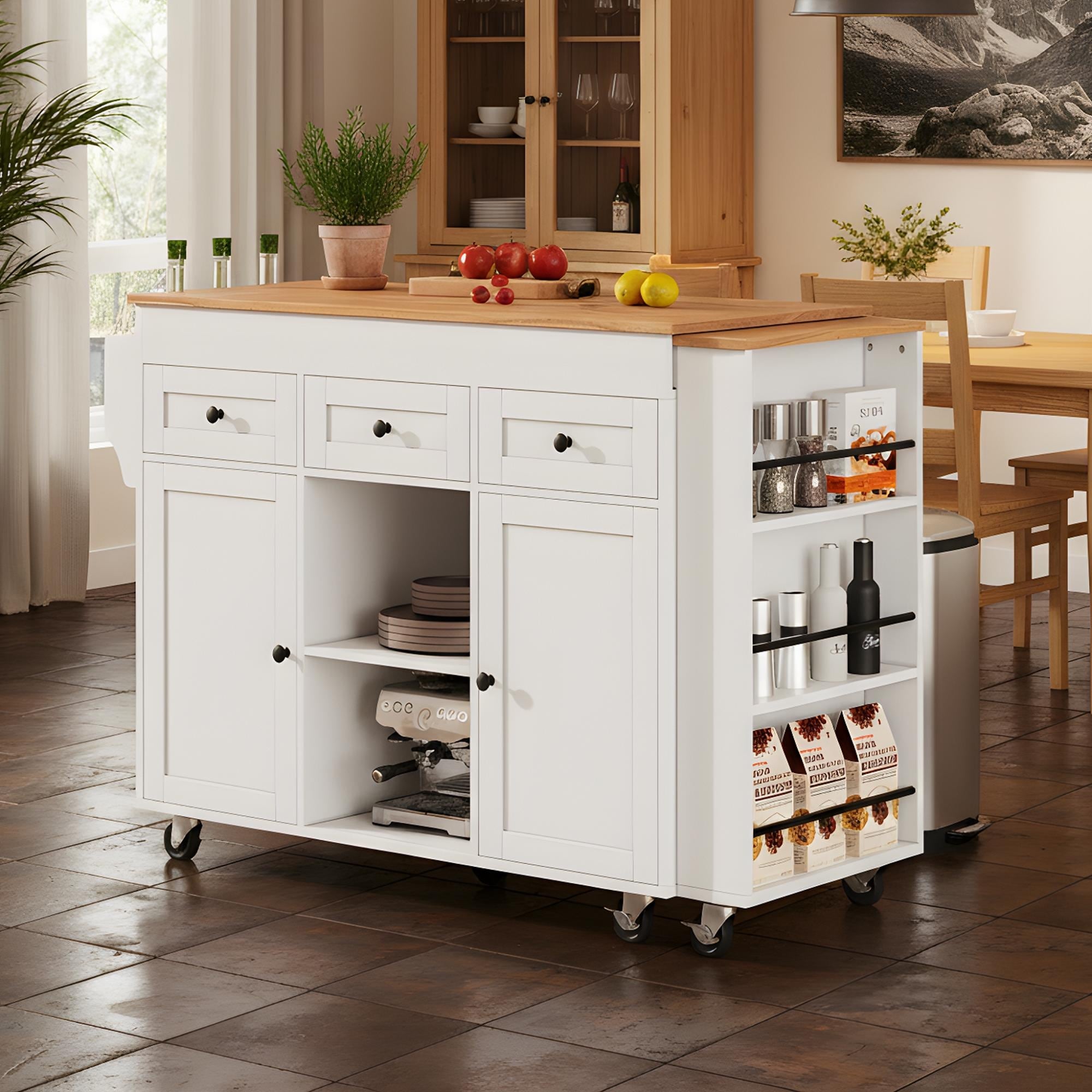 Rolling Kitchen Island with Locking Wheels,Storage Cabinet and Drop Leaf Breakfast Bar,Spice Rack, Towel Rack & Drawer