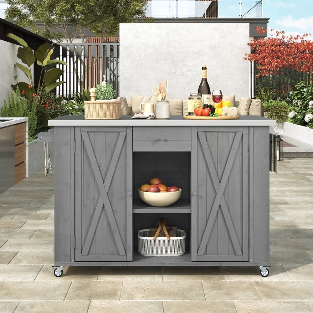 54.9in Kitchen Island Drop Leaf Power Outlet 4 Door Shelves Rolling 4 Wheels