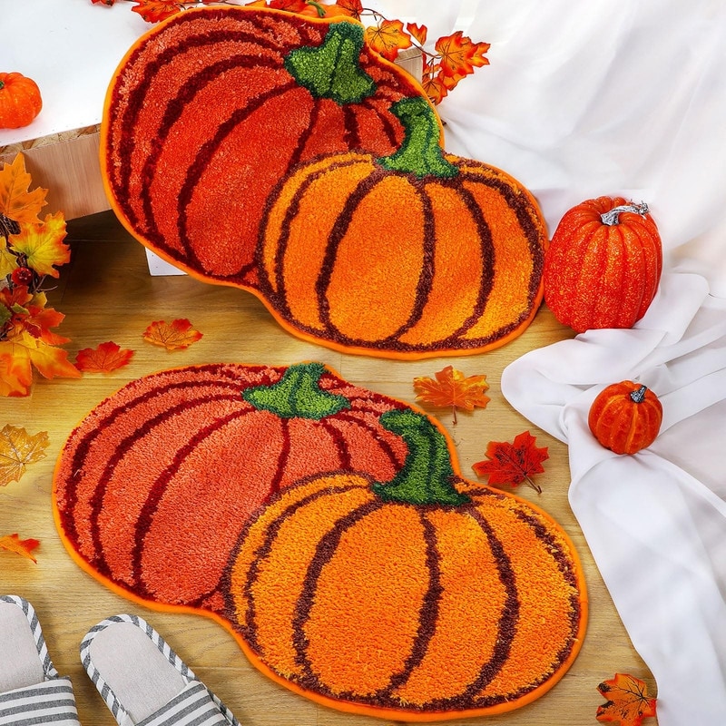 2 Pcs Pumpkin Bathroom Rugs Non-Slip Fall Bath Mats 26"x20" - 26" x 19.7"