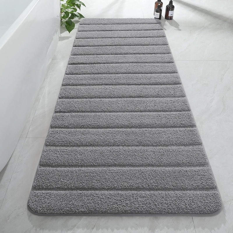 Luxury Long Bathroom Runner Rug 24x60 Black Non-Slip Mat
