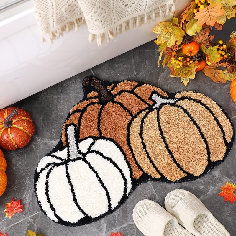 Pumpkin Bath Rug 19x30 Non-Slip Soft Washable Bathroom Mat