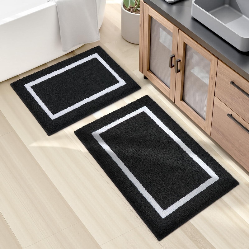 2 Piece Black White Bathroom Rug Set Non-Slip Soft Mats