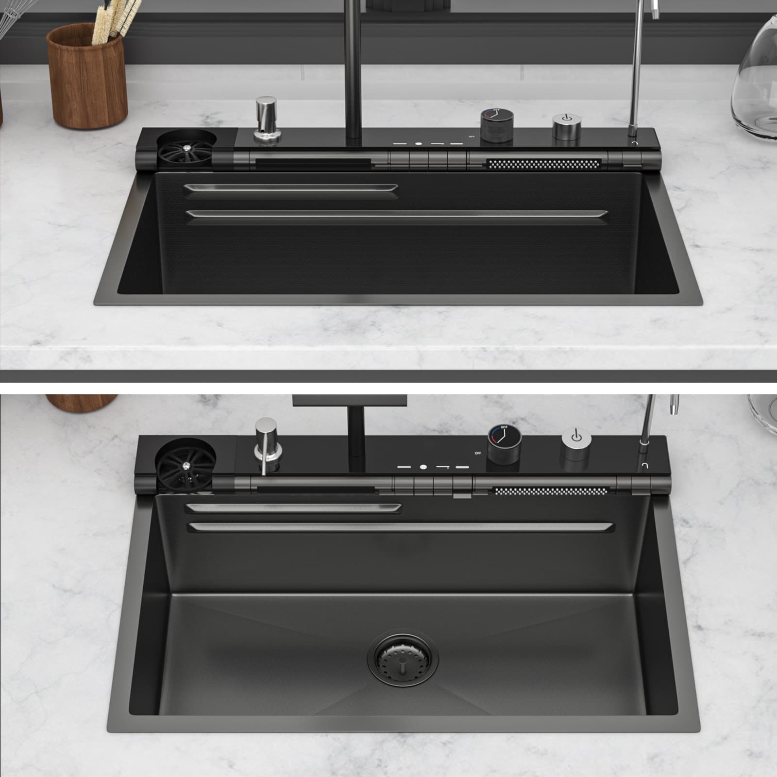 Cozy Stainless Steel Black Satin Countertop Kitchen Sink Rectangular 23x19x10 Lift-and-Turn Drain Modern Design - 23”x19”x10”