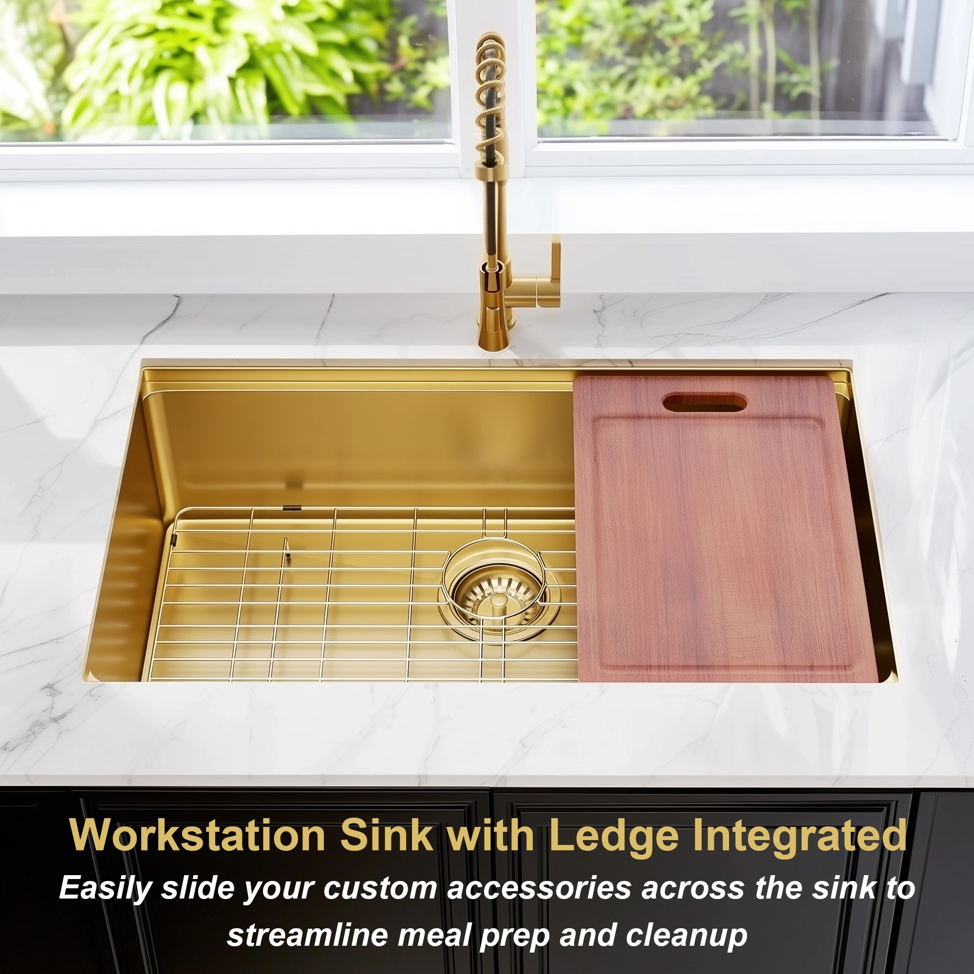 Lordear 30/33/36 Inch Stainless Steel Sink Farmhouse Apron Front Deep Single Bowl Gold Kitchen Sink with Accessories