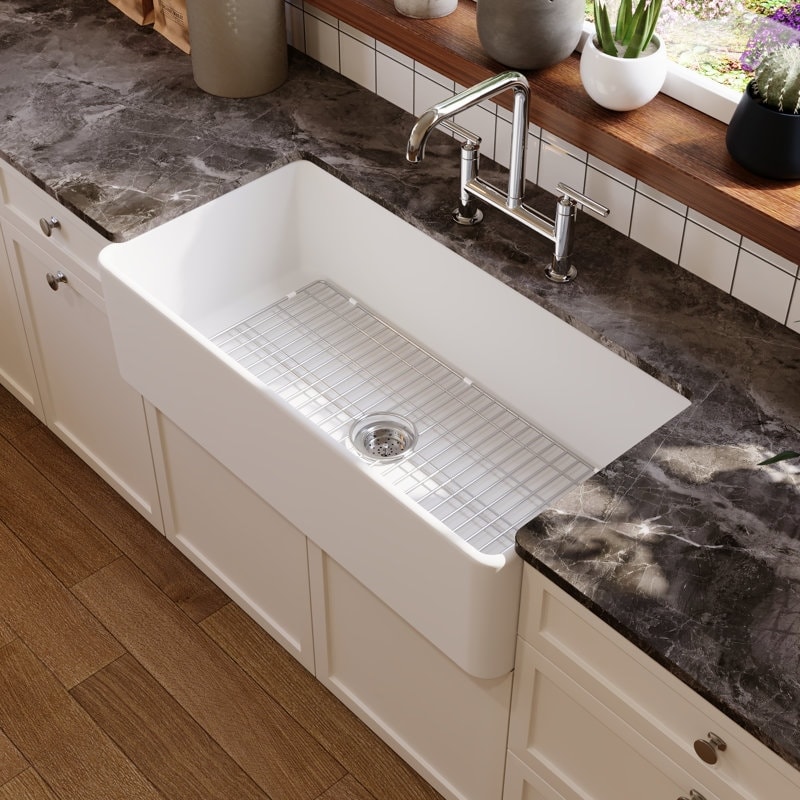Grove 36" L X 18" W Fireclay Rectangular Single Bowl Farmhouse Kitchen Sink with Grid and Strainer DV-1K505