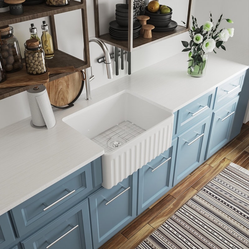 Perch 24" L X 18" W Single Bowl Farmhouse/Apron Kitchen Sink with Sink Grid and Basket Strainer DV-1K022
