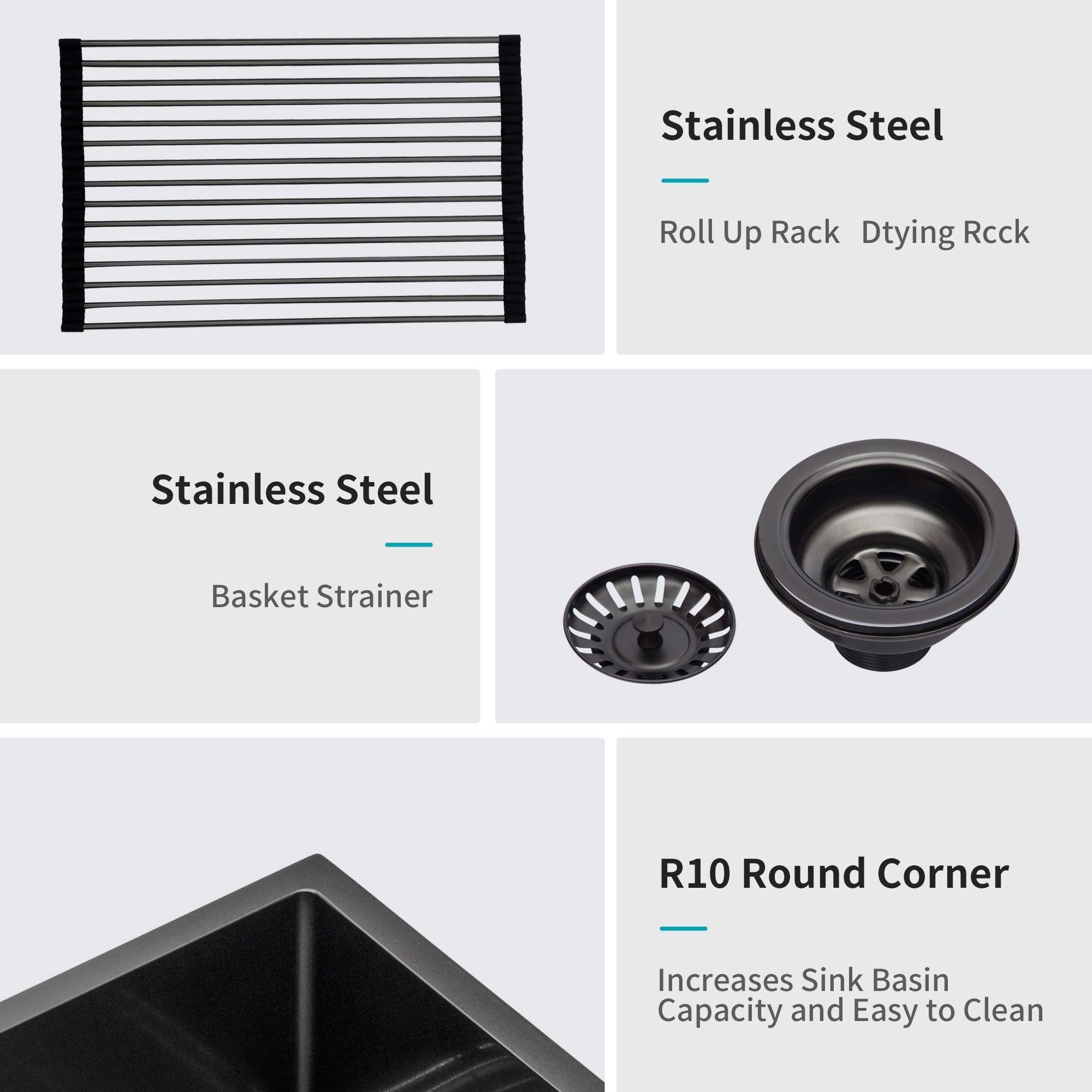 32x22 Inch Topmount Gunmetal Black Workstation 18 Gauge Stainless Steel Single Bowl Kitchen Sink