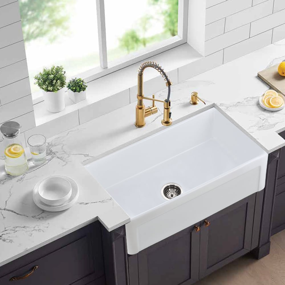 30 x 20 inch ceramic Farmhouse Apron-Front Kitchen Sink Single Bowl White