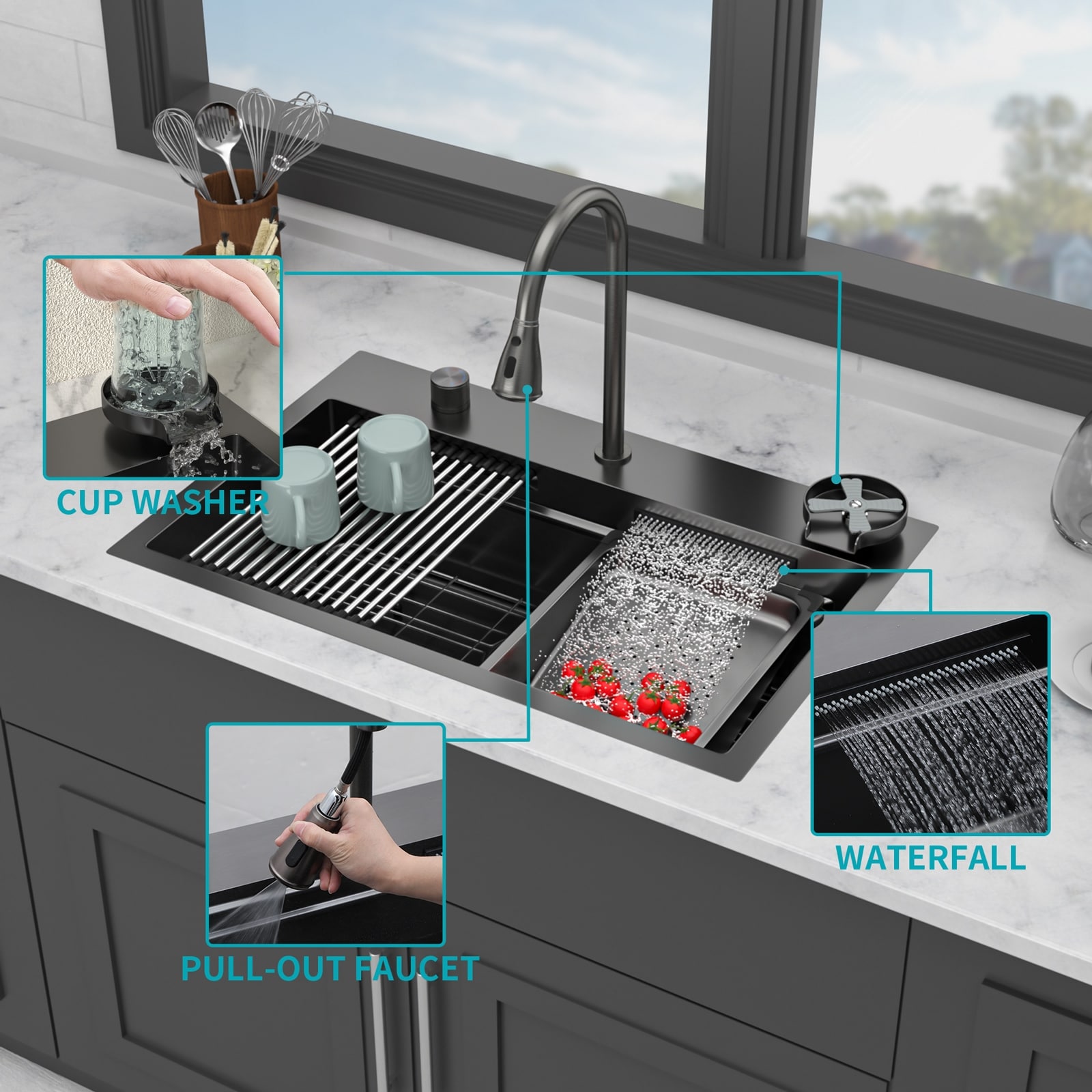Quartz Kitchen Sink Black granite composite Drop in kitchen sink
