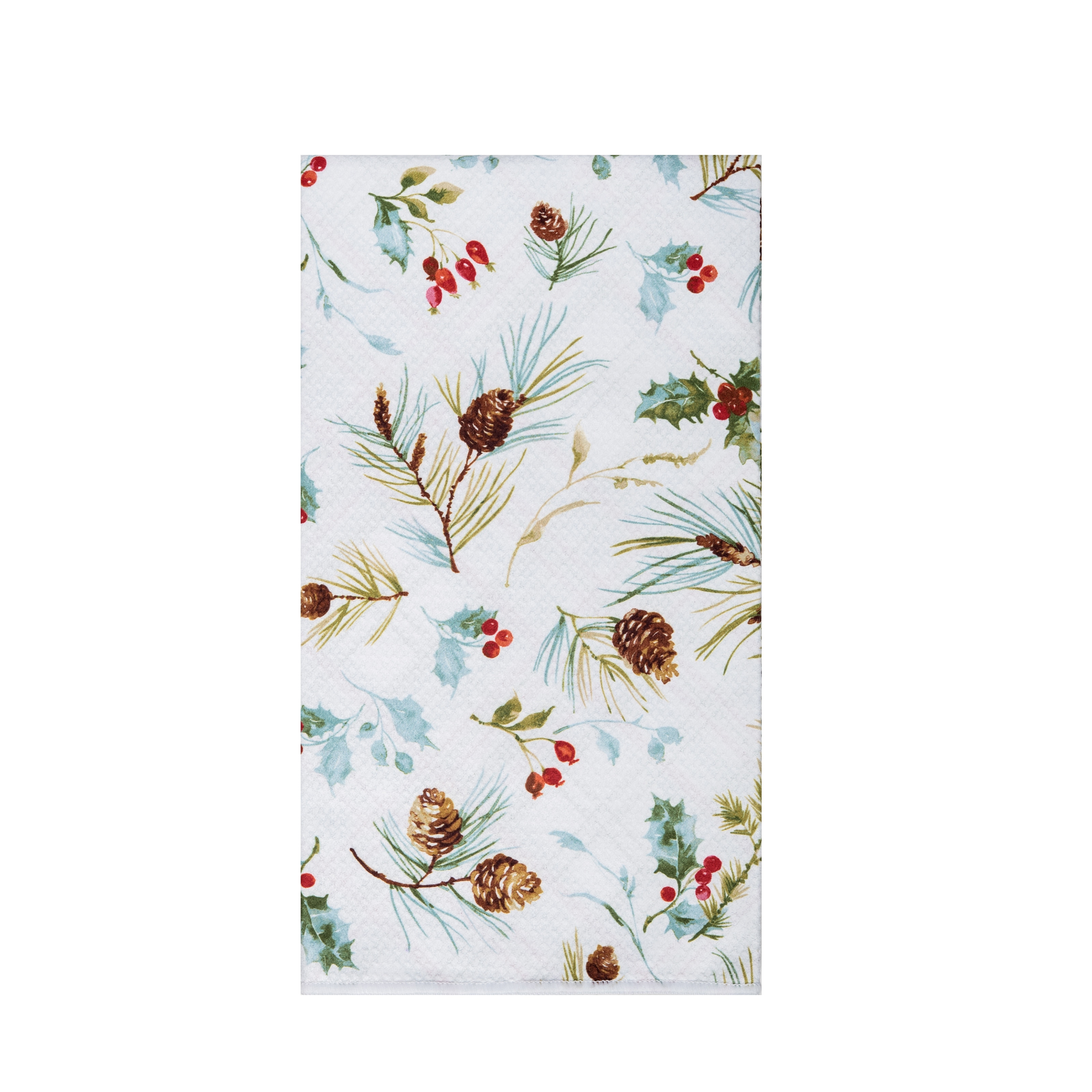 Edith Festive Pinecone Botanical Holiday Christmas Dishtowel