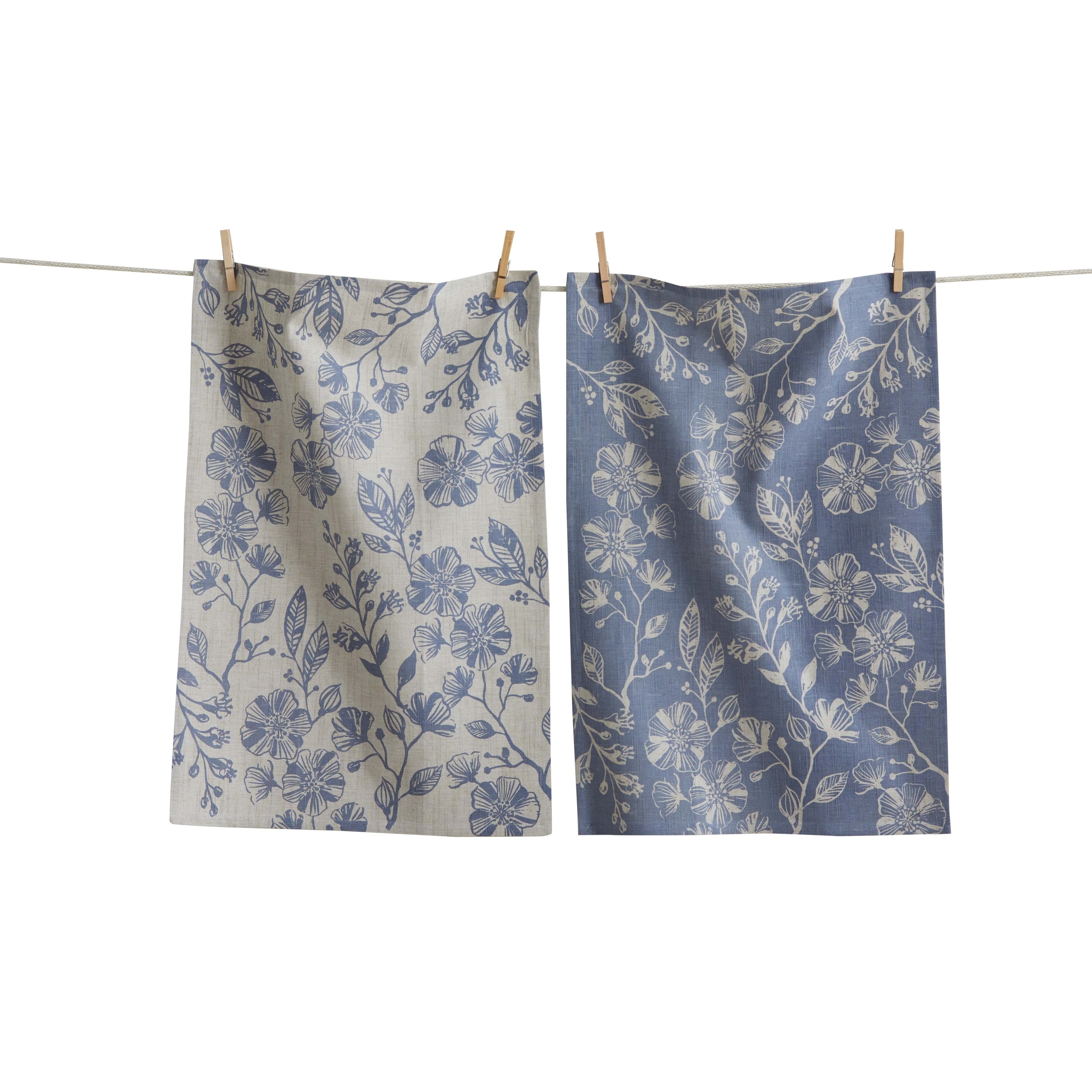 Canyon Print Floral Dishtowel S/2 Blue D Blue Denim Cotton Everyday