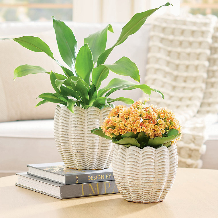 Scalloped Ceramic Indoor Planter, Set Of Two - Grandin Road