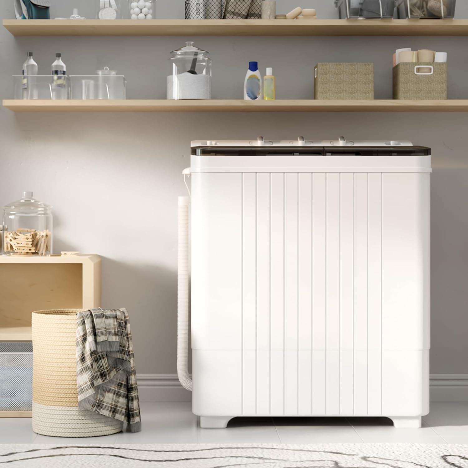28lbs Twin Tub Portable Washing Machine, Mini Washer Compact Laundry Machine with Drain Pump
