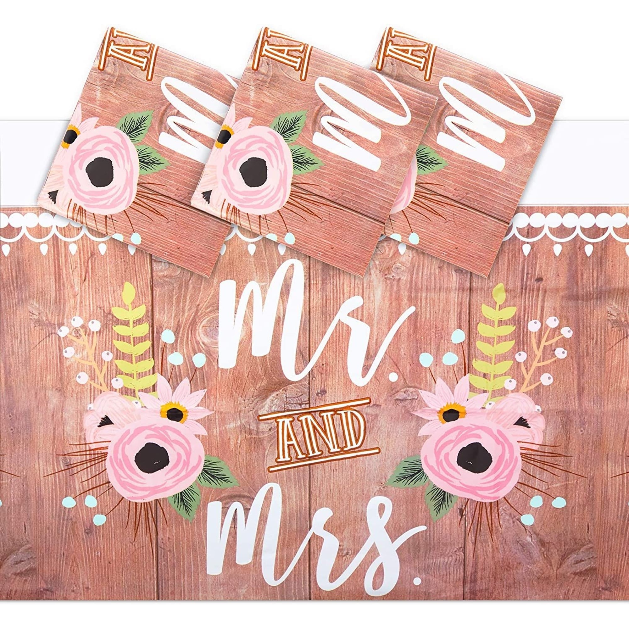 Sparkle and Bash Rustic Plastic Tablecloth for Weddings (54 x 108 in, 3 Pack)