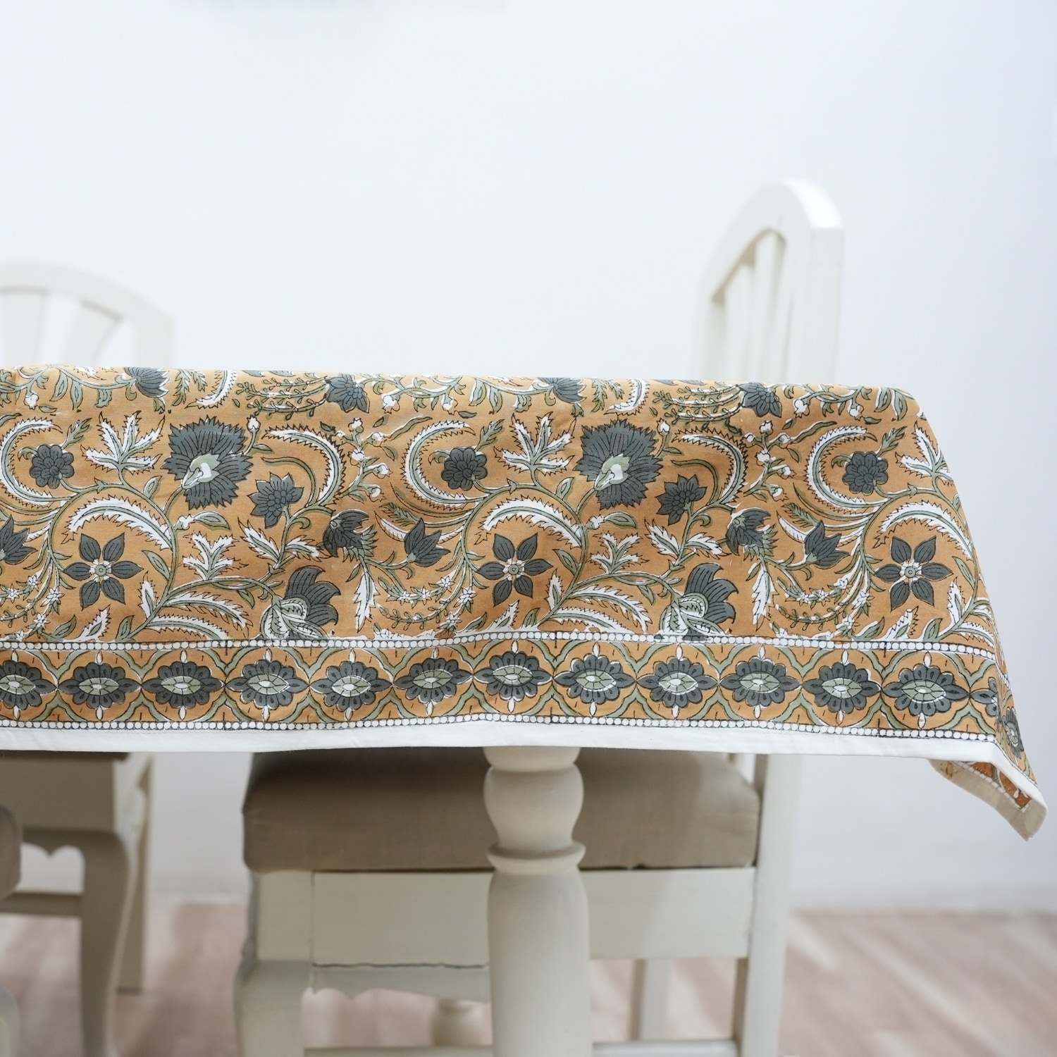 Fabdivine Handmade Block Print Cotton Brown Table Cover or Cloth Dining, Farmhouse & Kitchen Décor