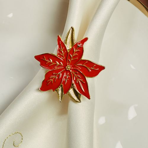 Poinsettia Napkin Rings Red Set of Four, Set of Four, Red