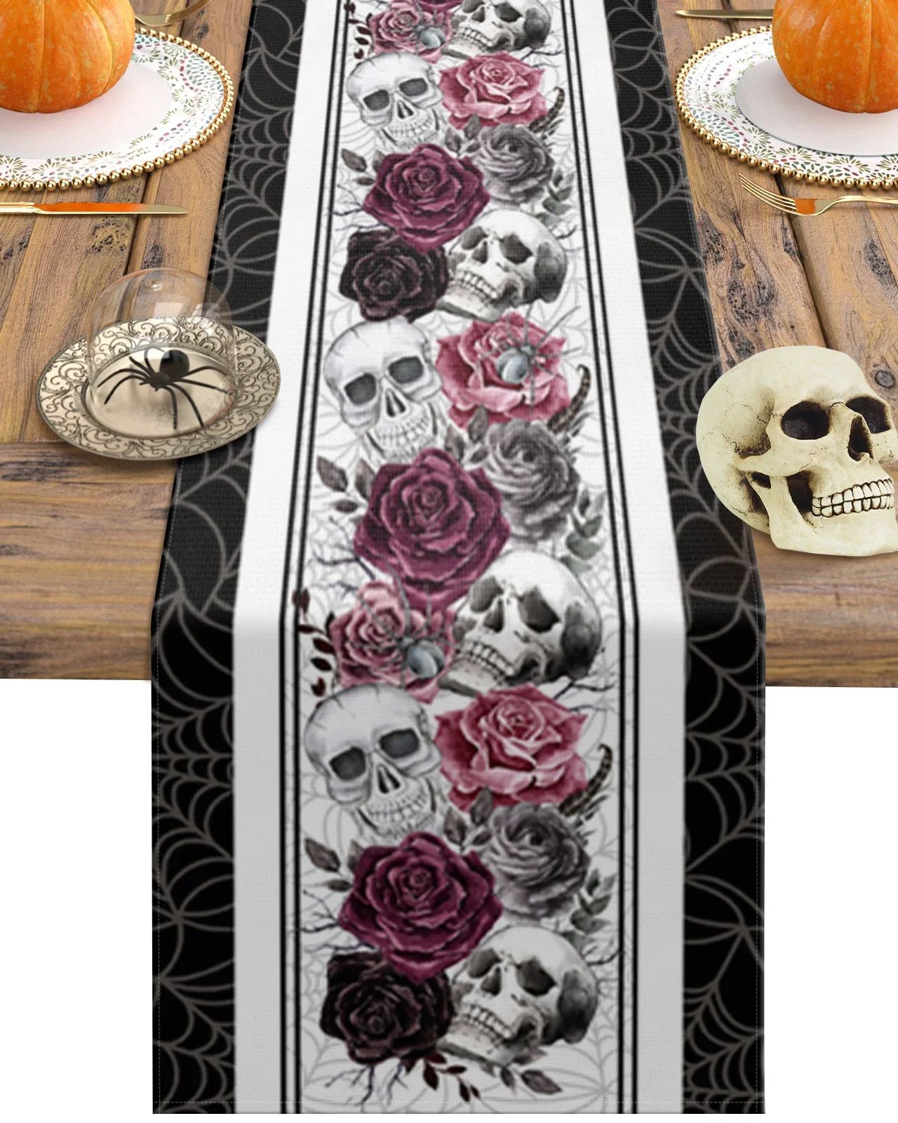 Viking Raven Helm Of Awe Linen Table Runner Norse Dining Decor brown 150x33cm 59x13inch