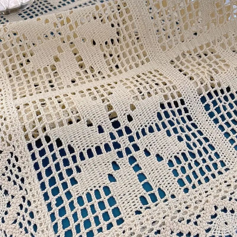Crochet Cotton Linen Table Runner Lace Vintage Farmhouse Table Decor 40 X 160 Cm
