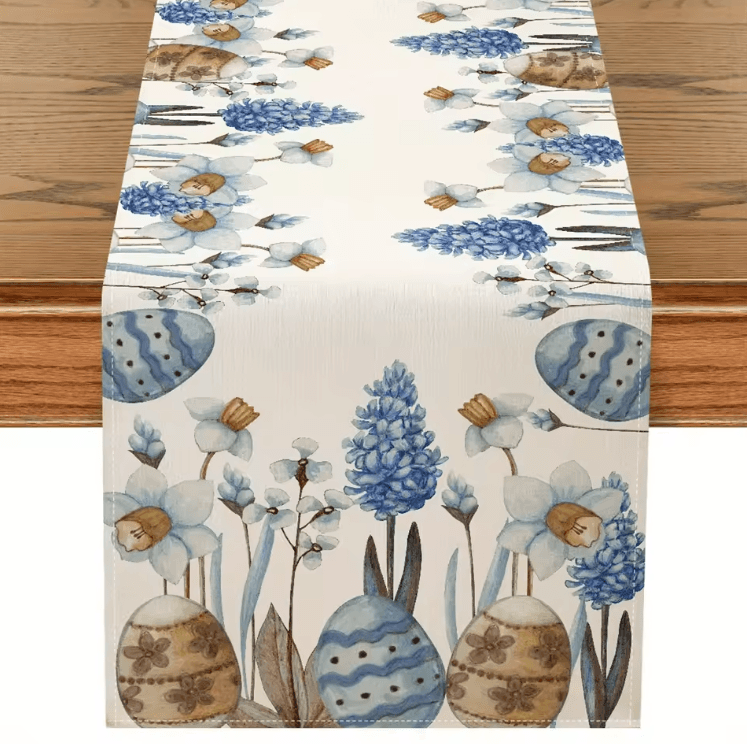 Easter Blue Floral Egg Linen Table Runner Spring Botanical Farmhouse Table Decor 01 200x33cm 78.7x13inch