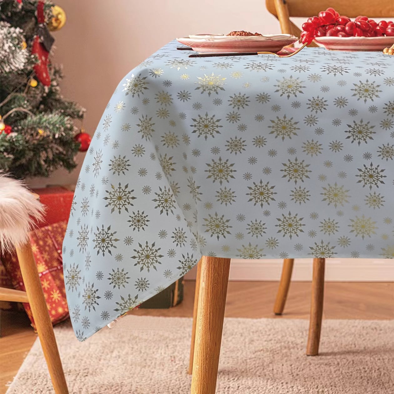 Violet Linen Seasonal Xmas Christmas Holiday European Stars Winter Snowflakes Solid White Pattern Tablecloths