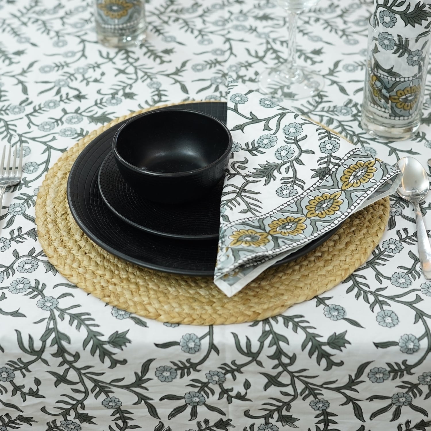 Fabdivine Floral Cotton Table Cover or Cloth Handmade Block Print for Dining & Home Décor Accent