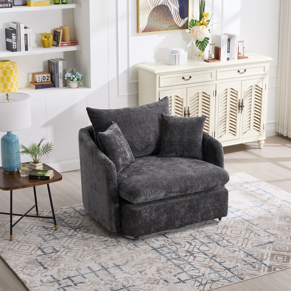 Chenille/Boucle Swivel Barrel Chair with Storage Ottoman