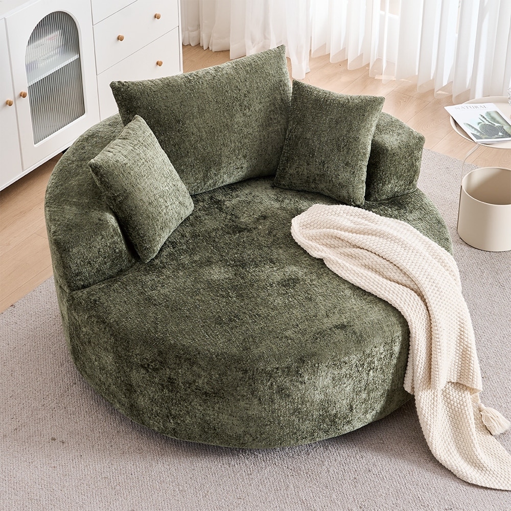 Round Accent Chair with High-Resilience Cushions, Swivel Chenille Barrel Chair, Fluffy Sleeper Lounge Chair
