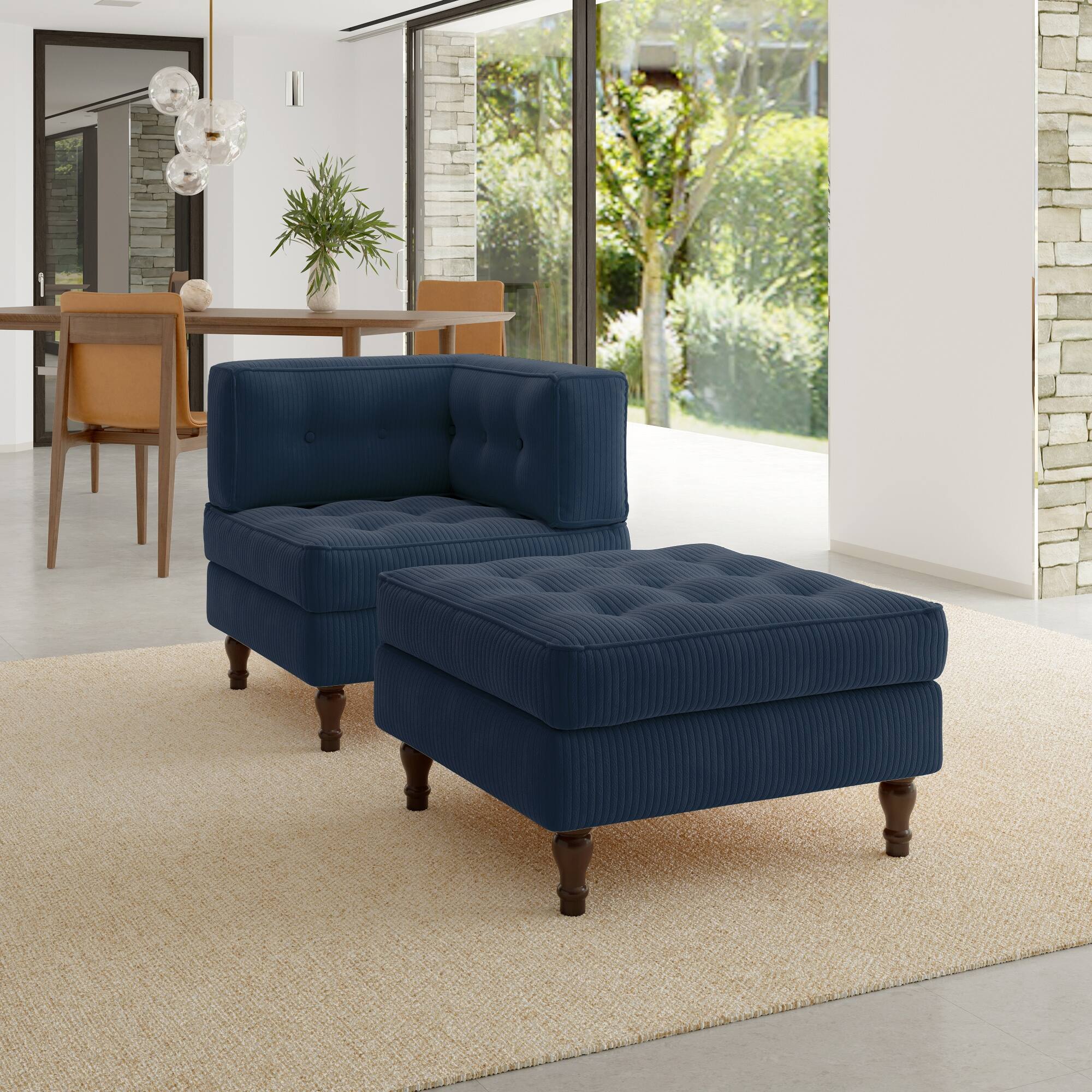 Corduroy Tufted Accent Chair Armchair and Ottoman Set