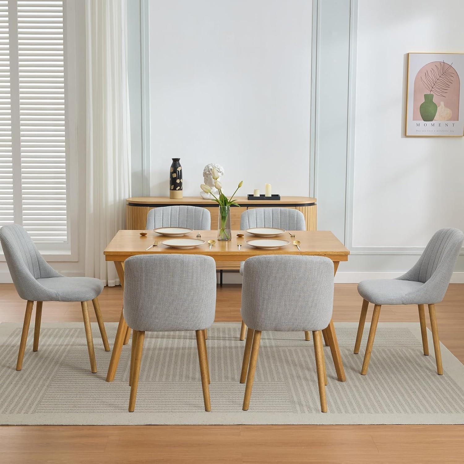 Set of 6 Fabric Dining Chair,Oak Legs 300LBS Capacity