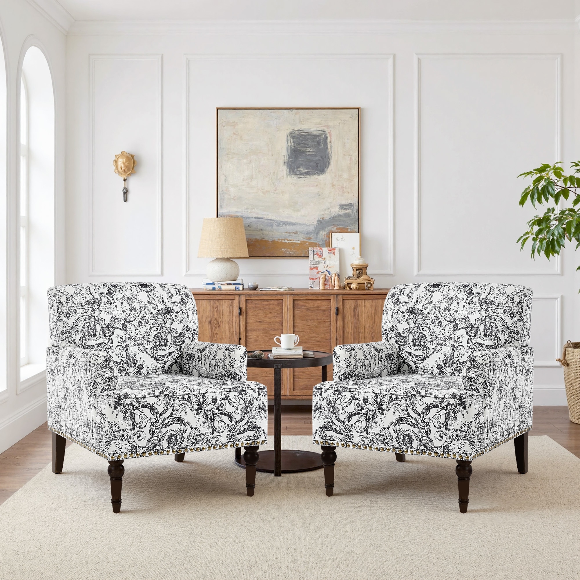 2 Set Upholstered Accent Chairs Nailhead Trim Armchairs