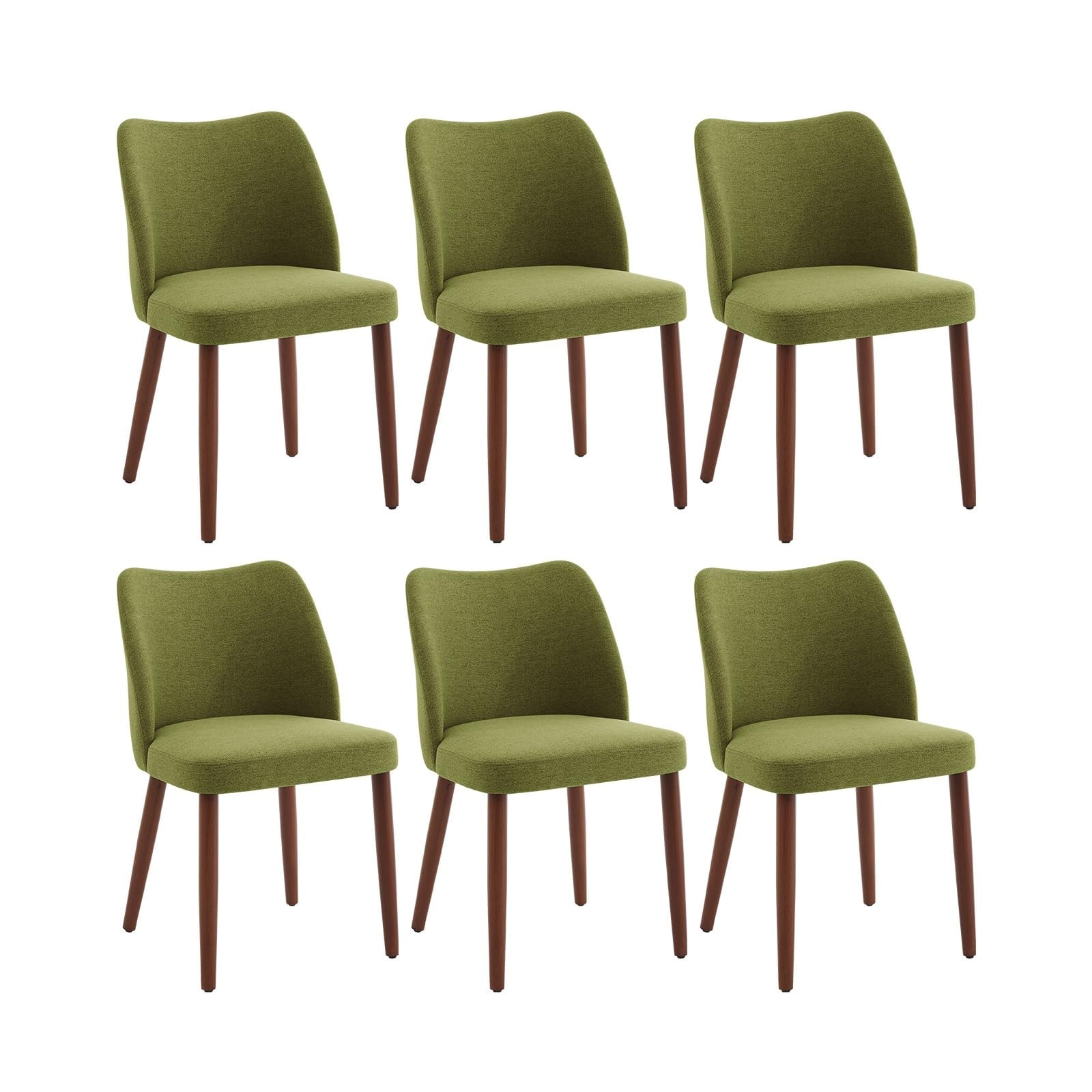 Set of 6 Linen Wingback Dining Chairs,Solid Wood Leg Classic Seat