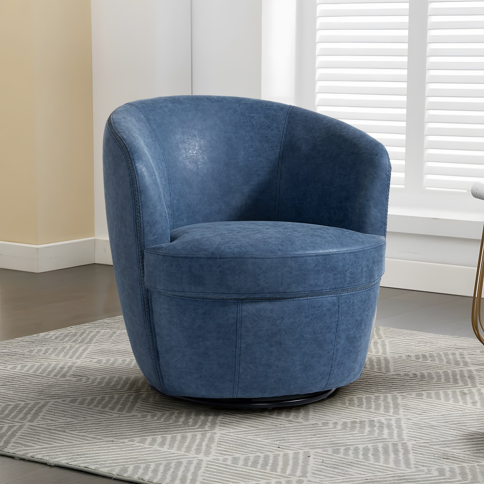 Modern Upholstery Barrel Swivel Chair Faux Leather