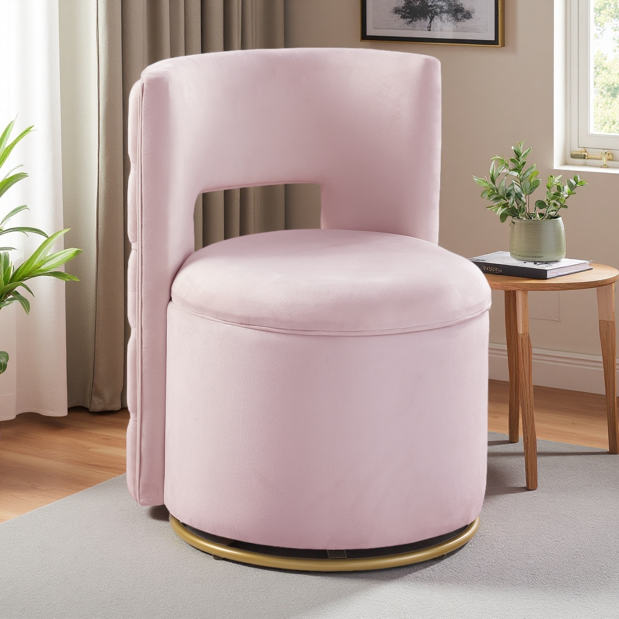 Velvet Swivel Accent Chair with 360° Rotation & Storage