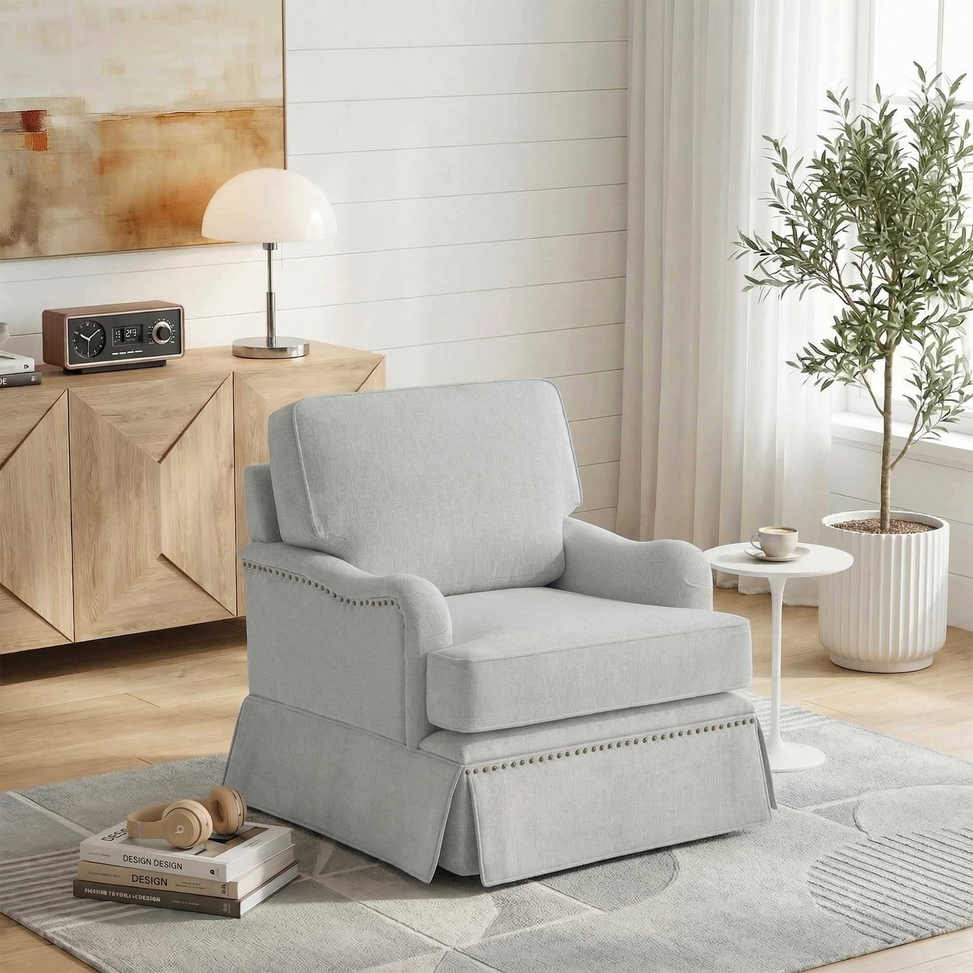 Modern Chenille Swivel Armchair and Storage Ottoman