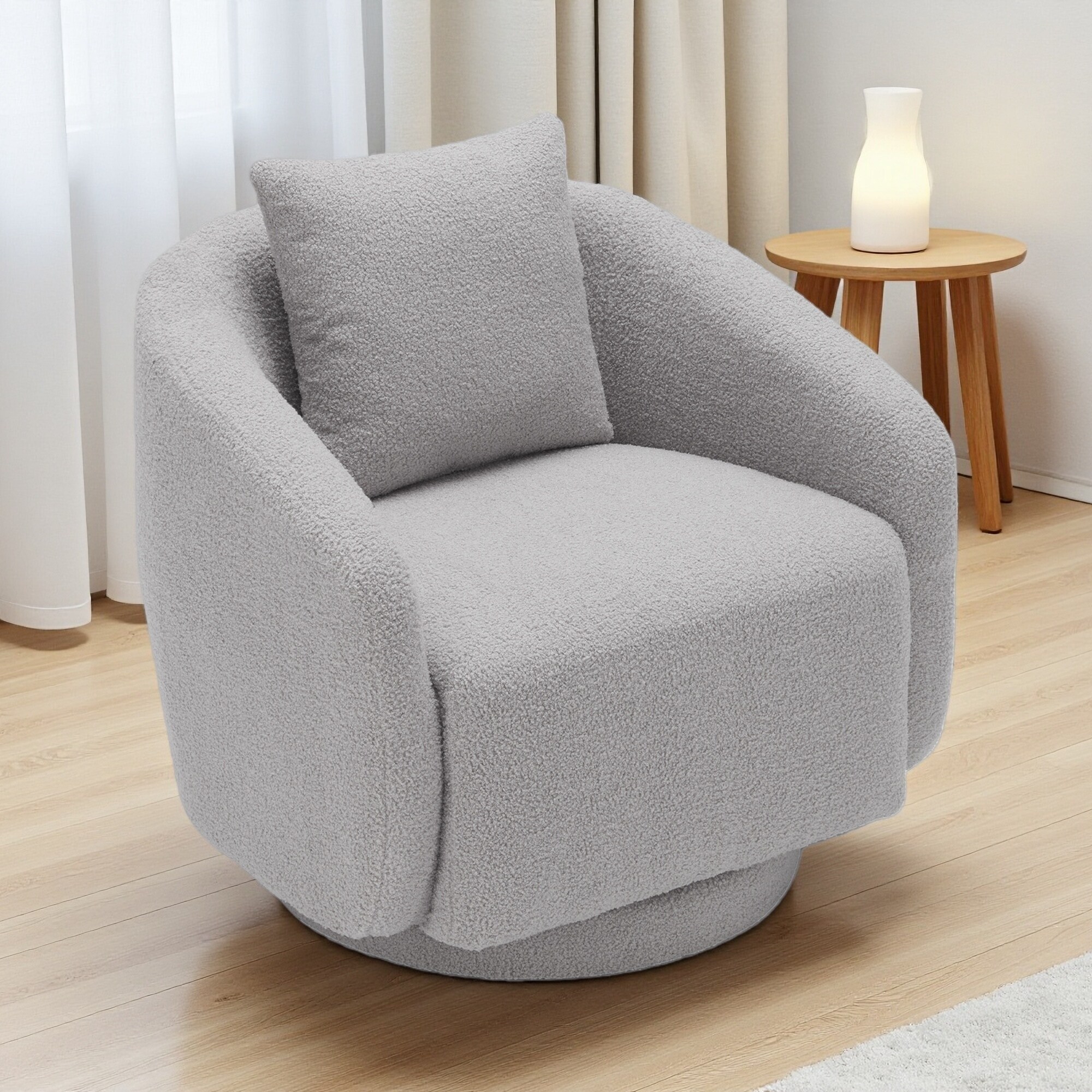 Fabric Swivel Accent Chair with Wood Frame and Back Pillow
