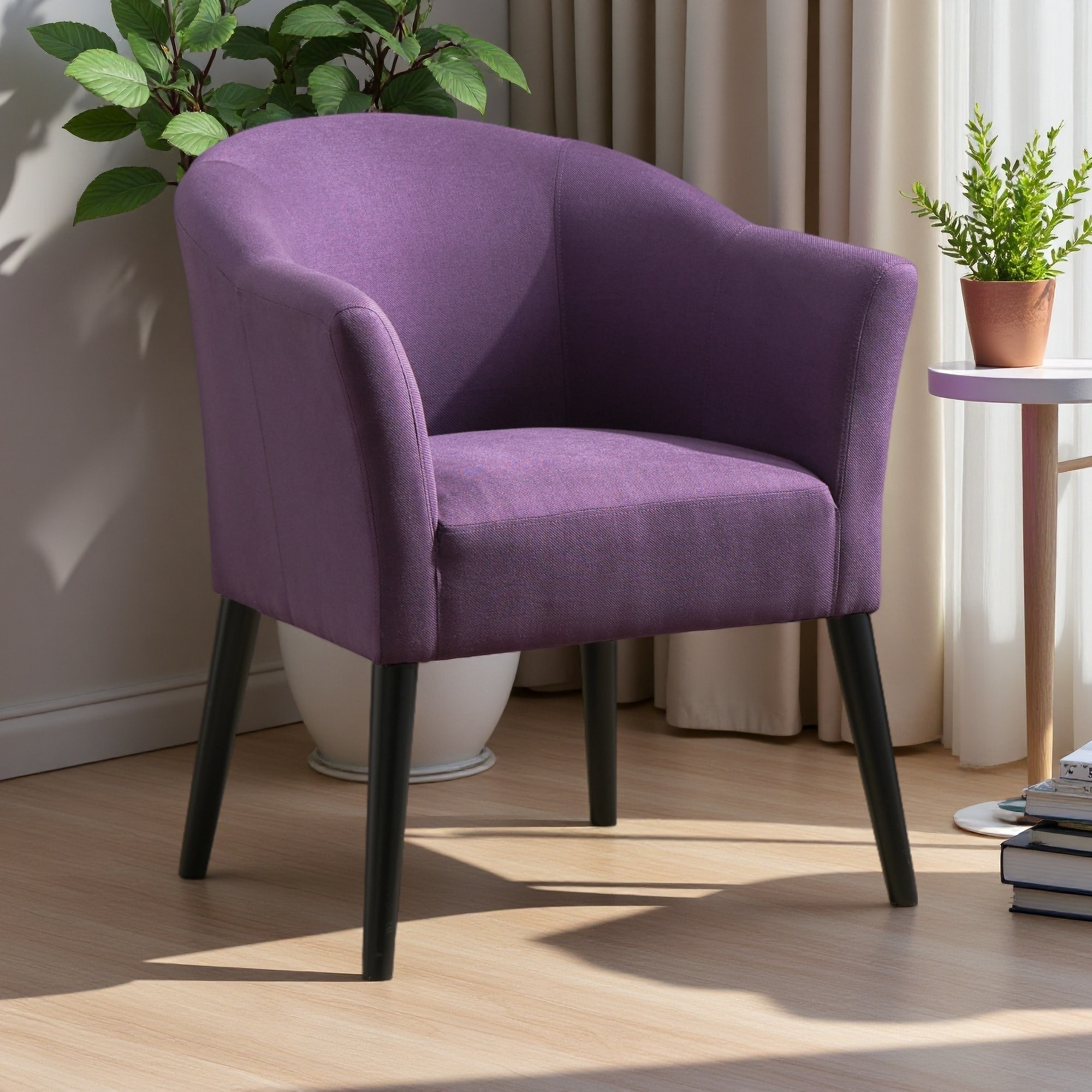 27" Fabric Armchair with Cushioned Seat & Birch Wood Legs, Plum Color