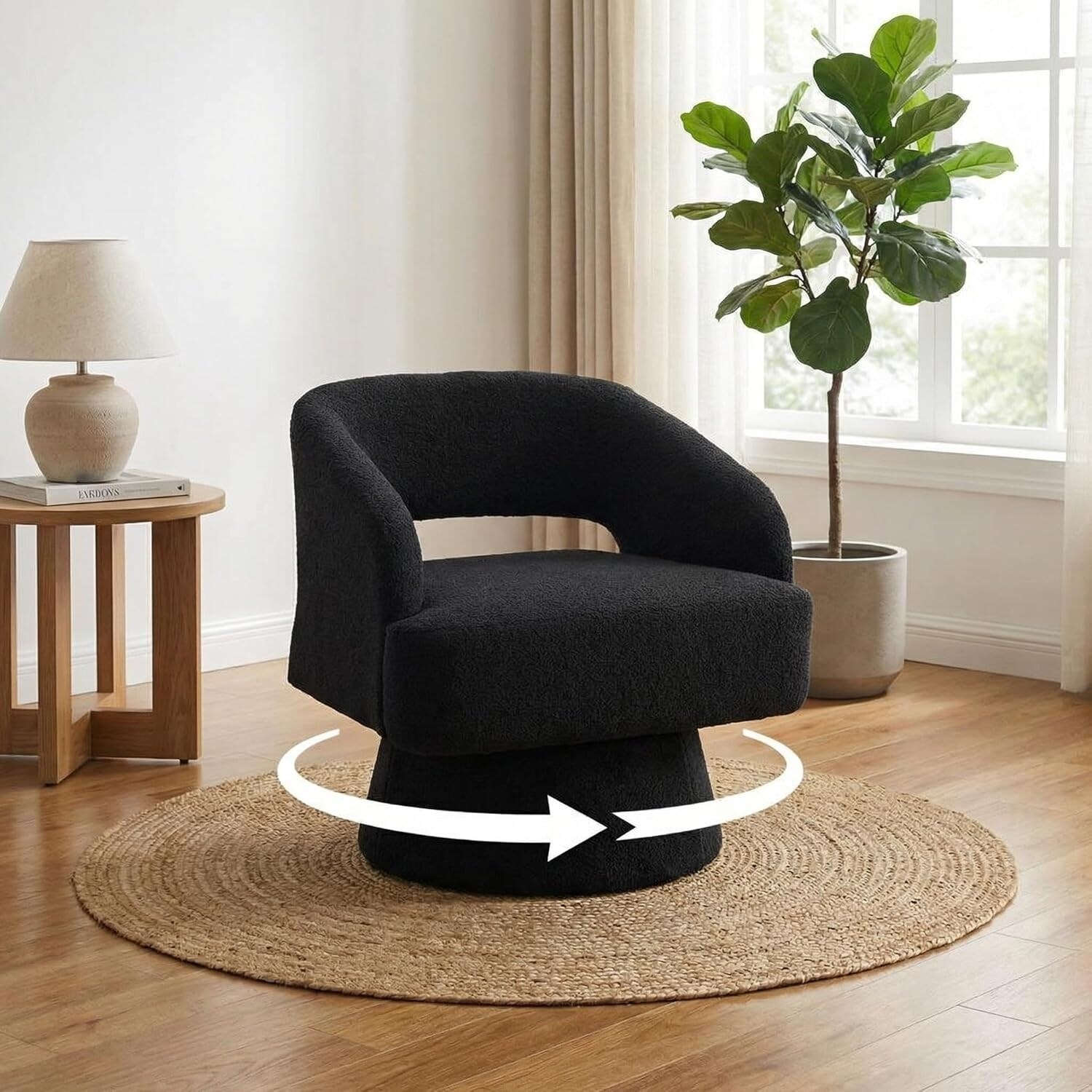 30.3"W Boucle Upholstered Swivel Accent Barrel Chair and Comfy Round Accent Single Sofa Chair