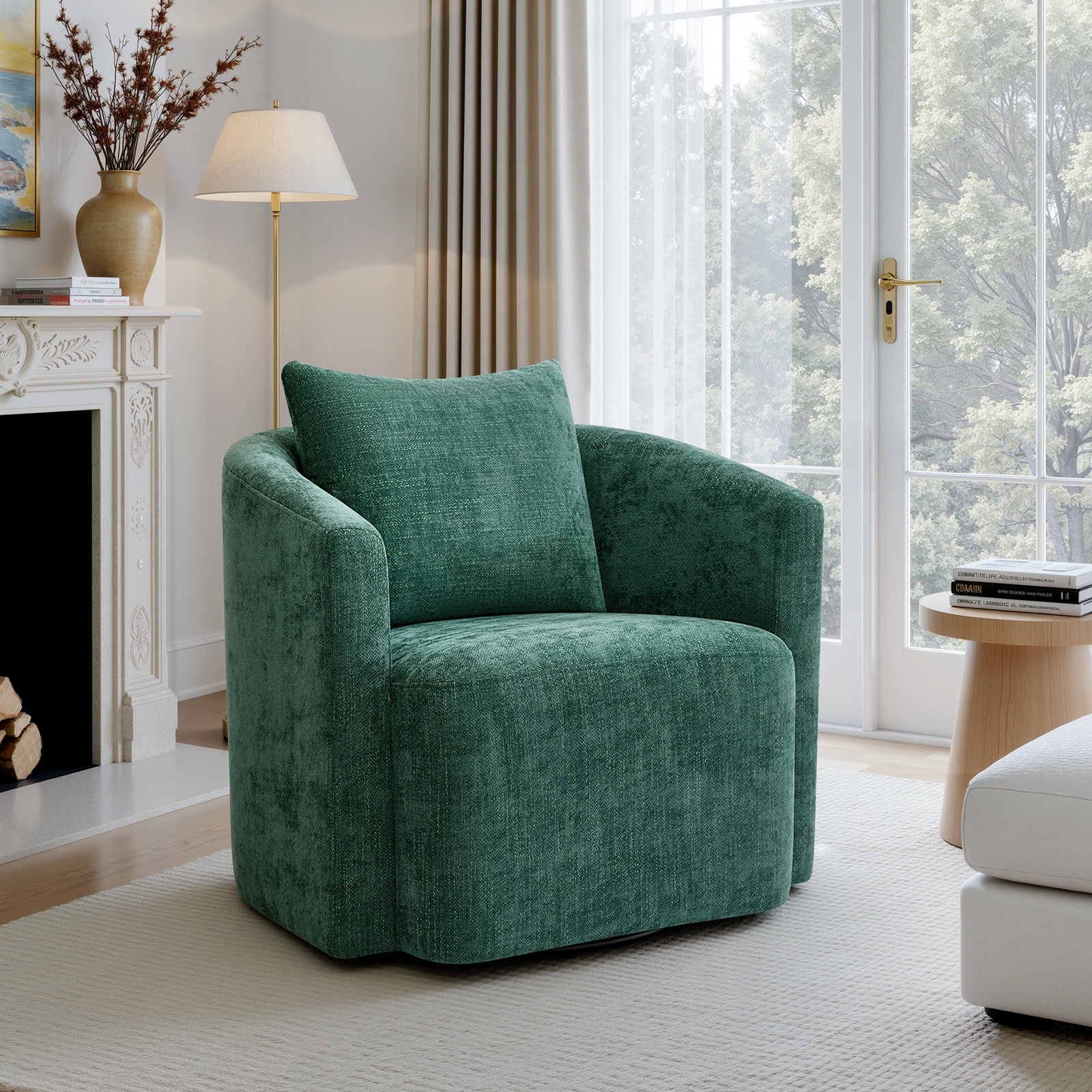Chenille Upholstered Swivel Accent Barrel Chair Armchair with Pillow - 29.1"W x 29.9"D x 32.2"H