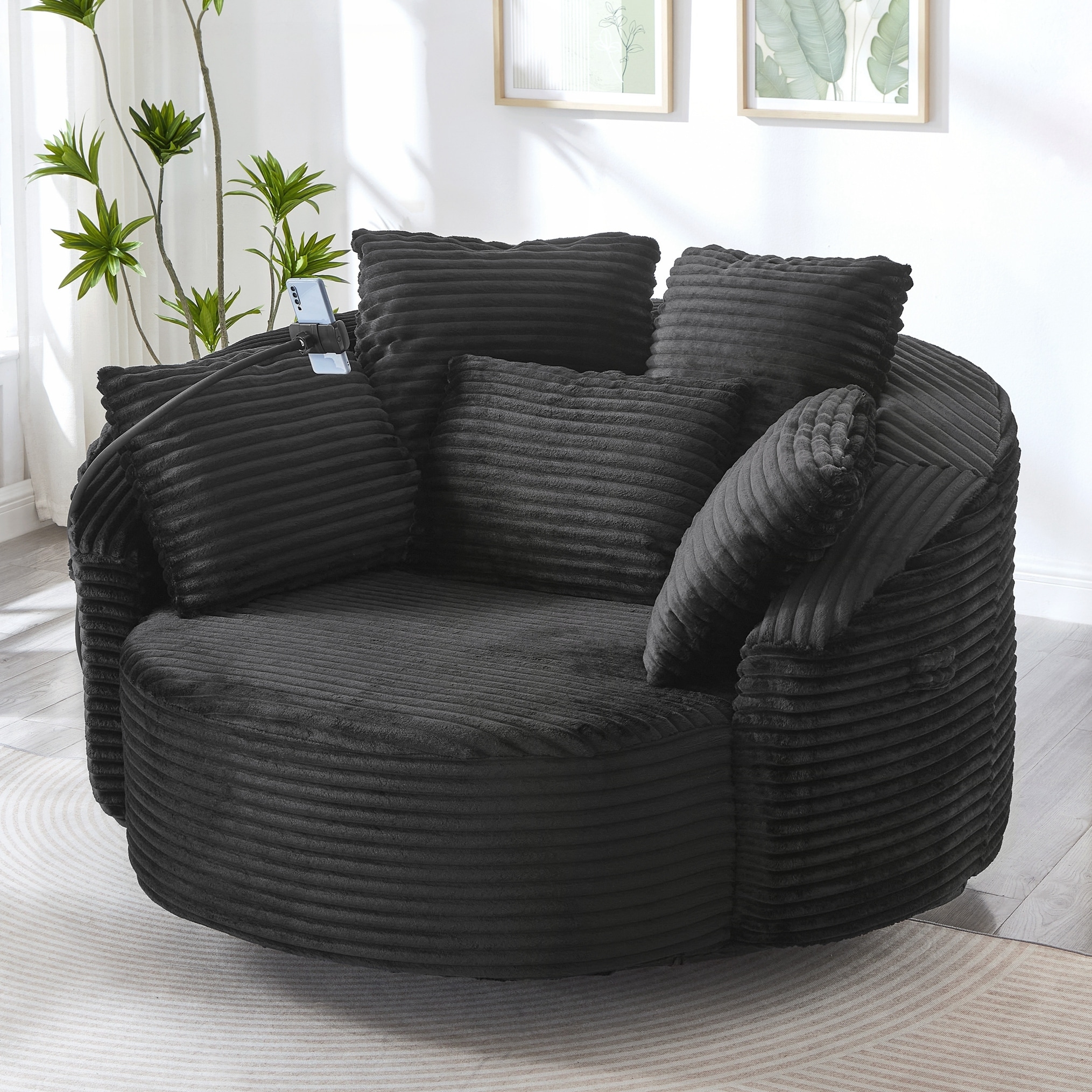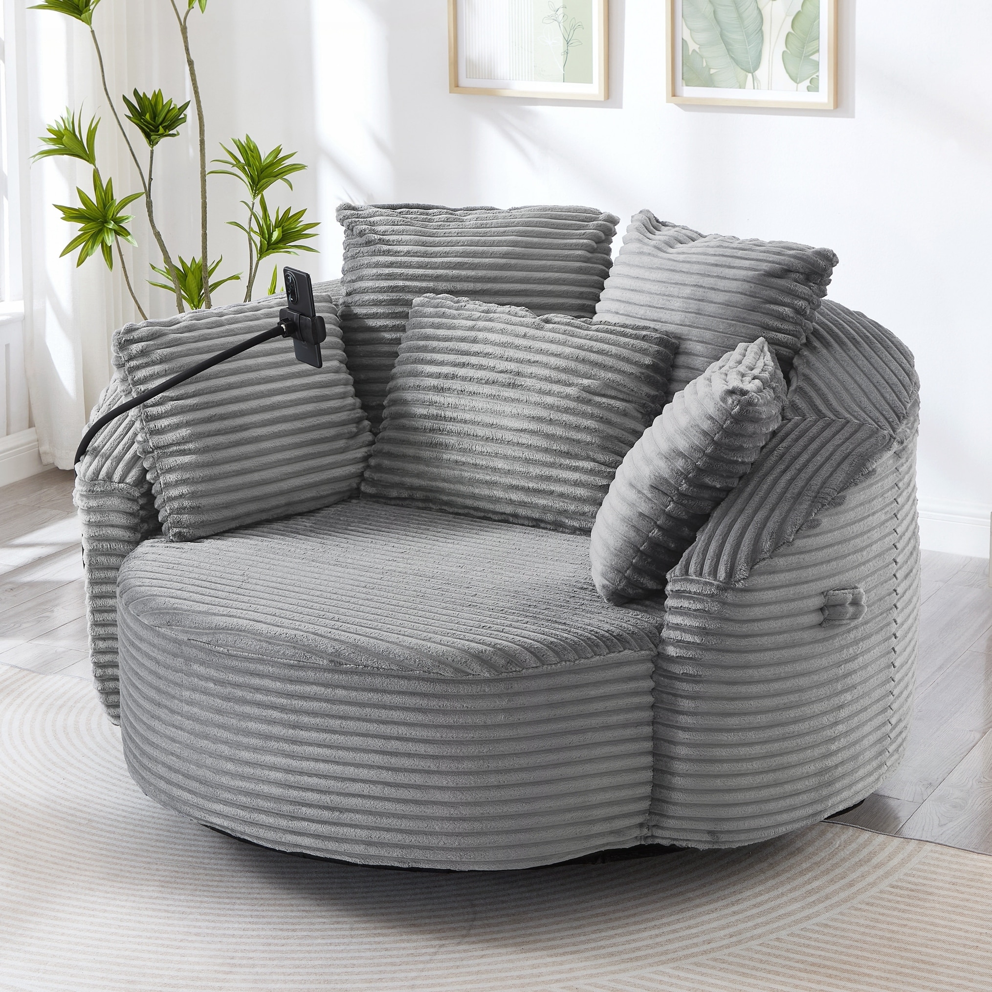 360° Swivel Chair Accent Barrel Chair Corduroy Round Sofa Chair