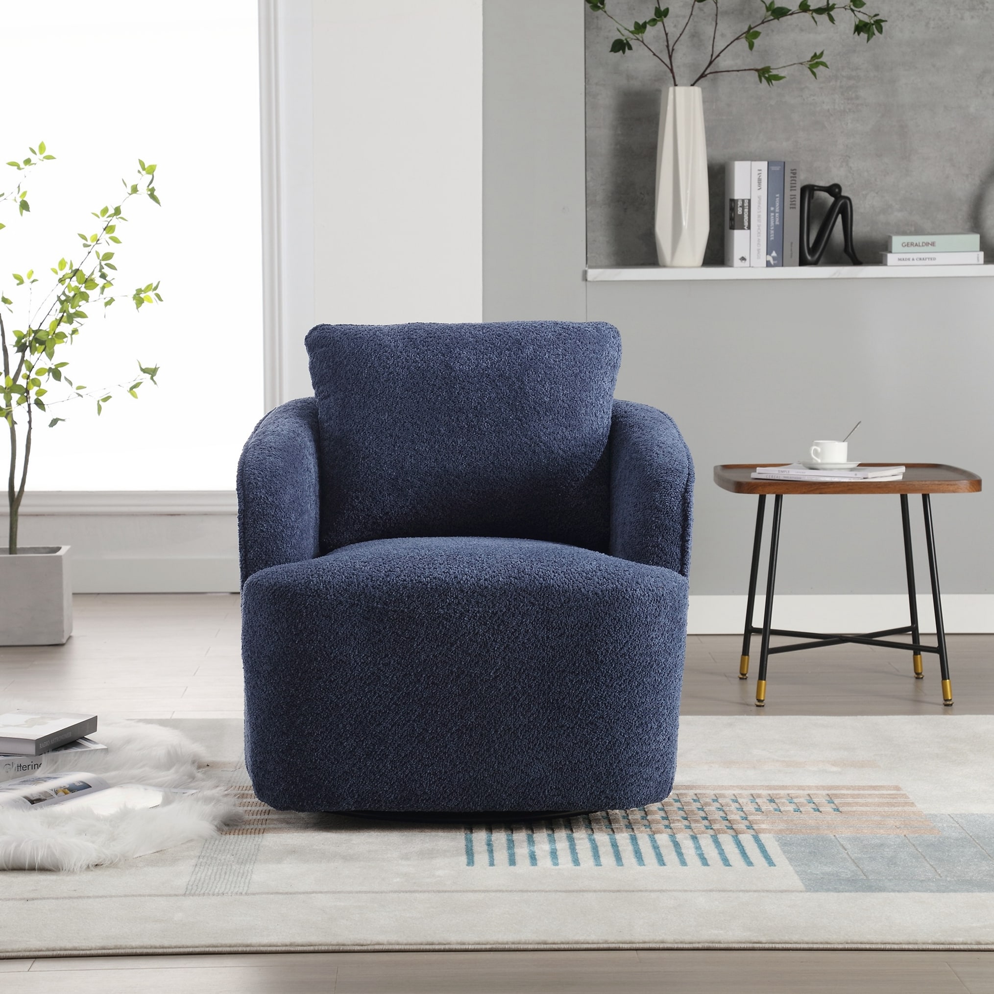 Modern Upholstered Accent Swivel Barrel Chair for Living Room