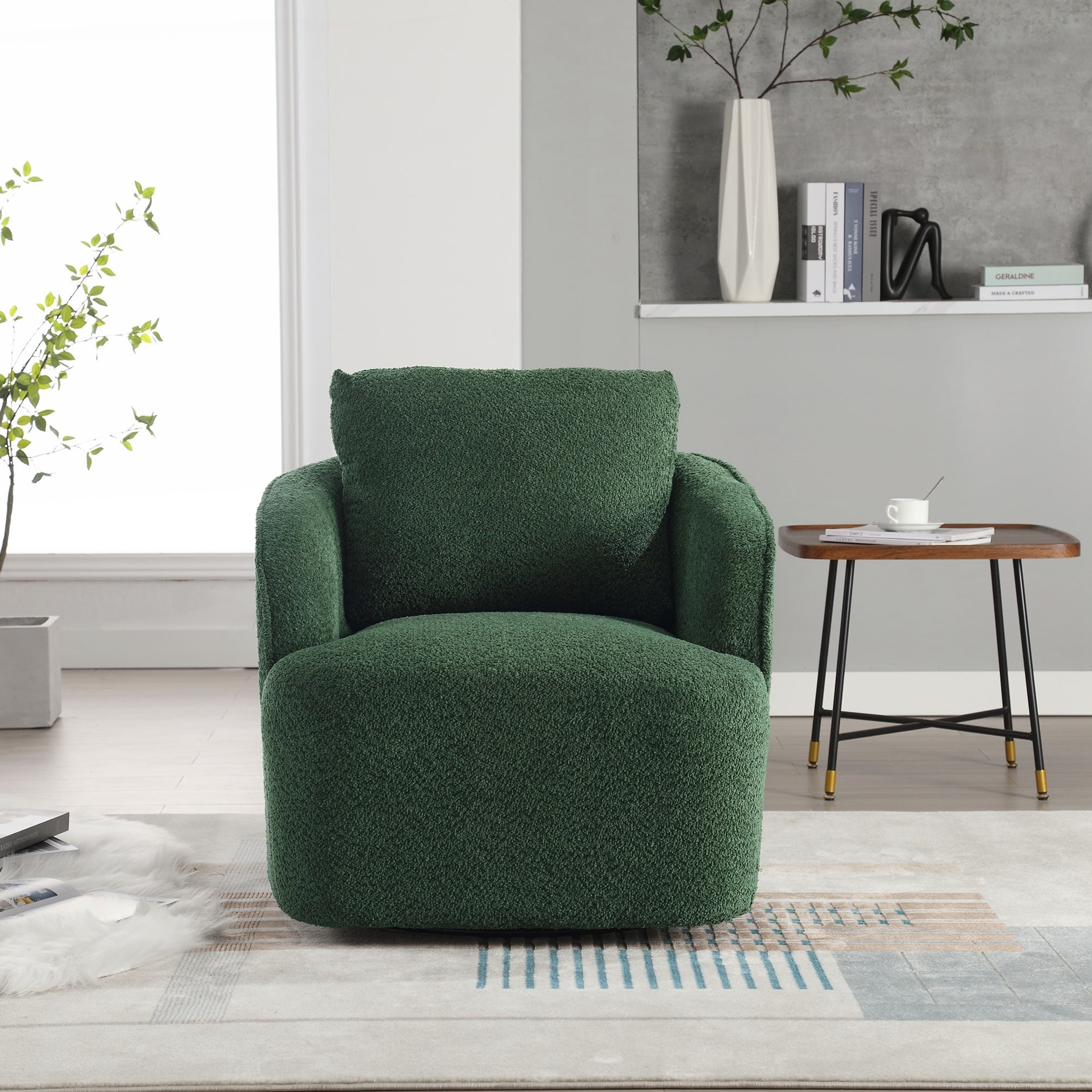 Spruce & Spring 360° Swivel Accent Chair with Solid Wood Base and Padded Seat