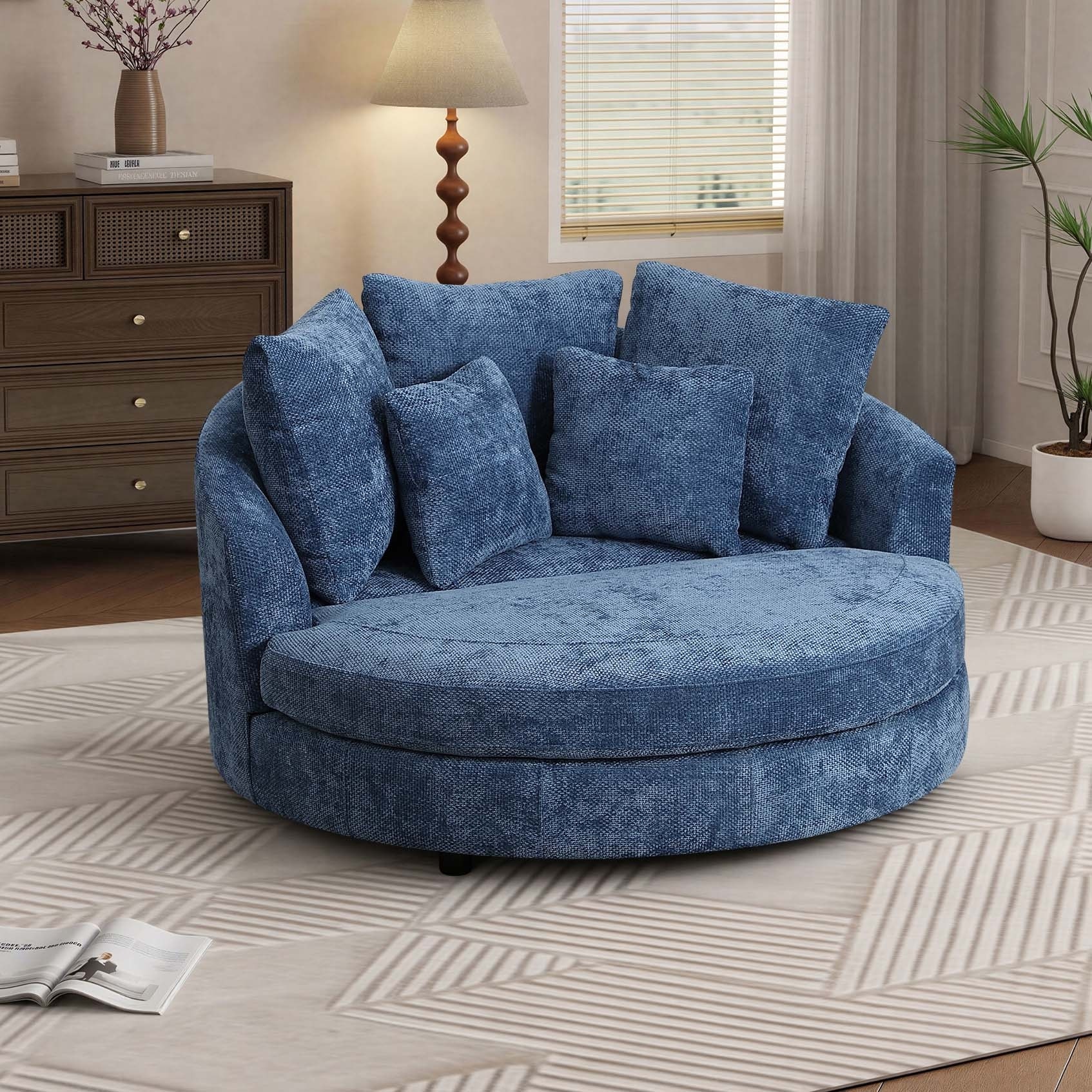 59.8''W Modern Oversized Sofa Chair, Round Accent Barrel Chair With 5 Pillows