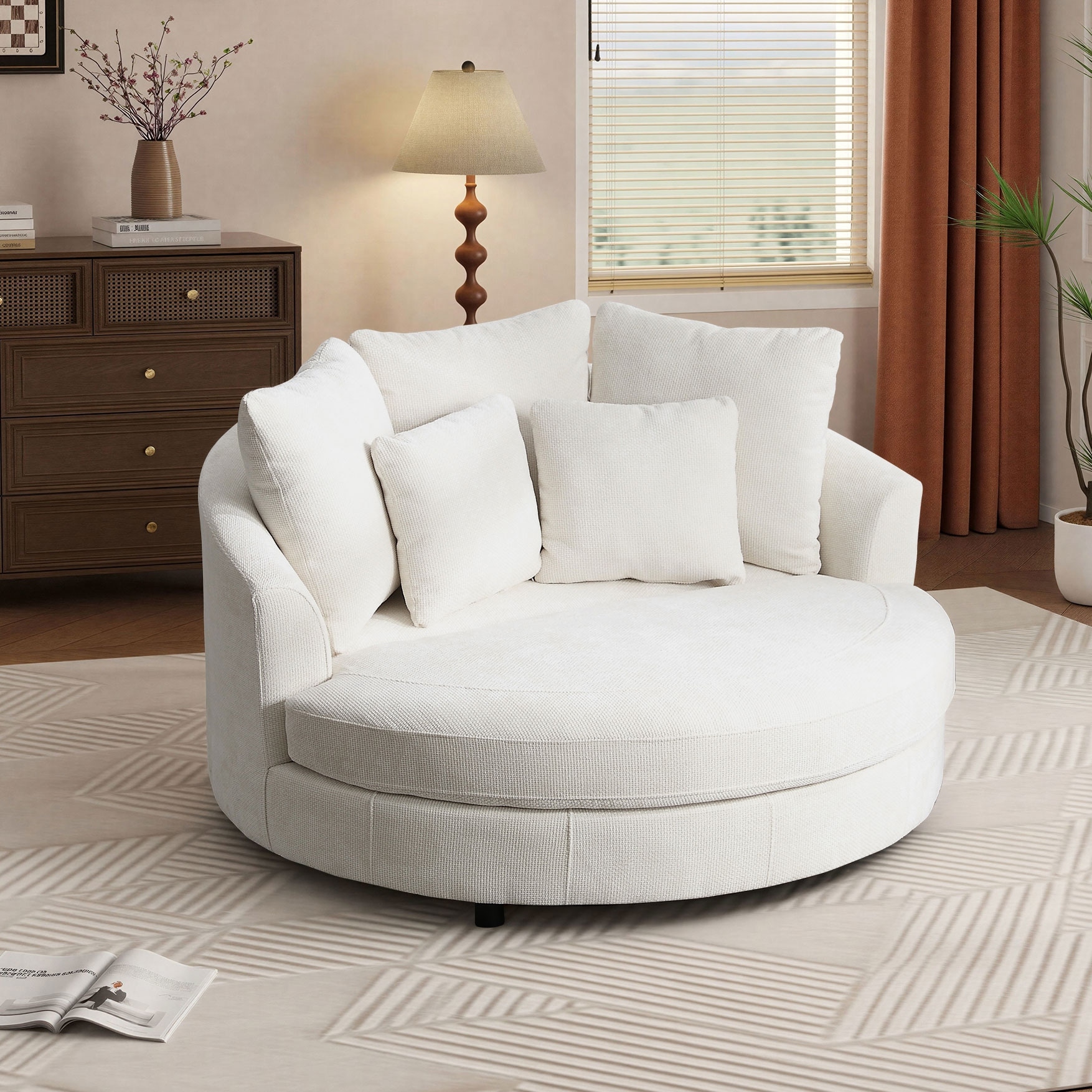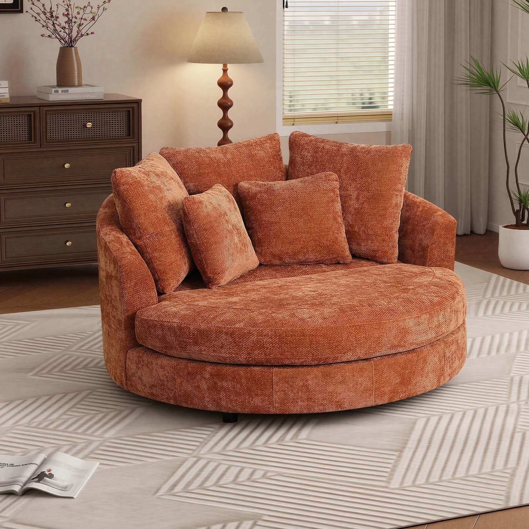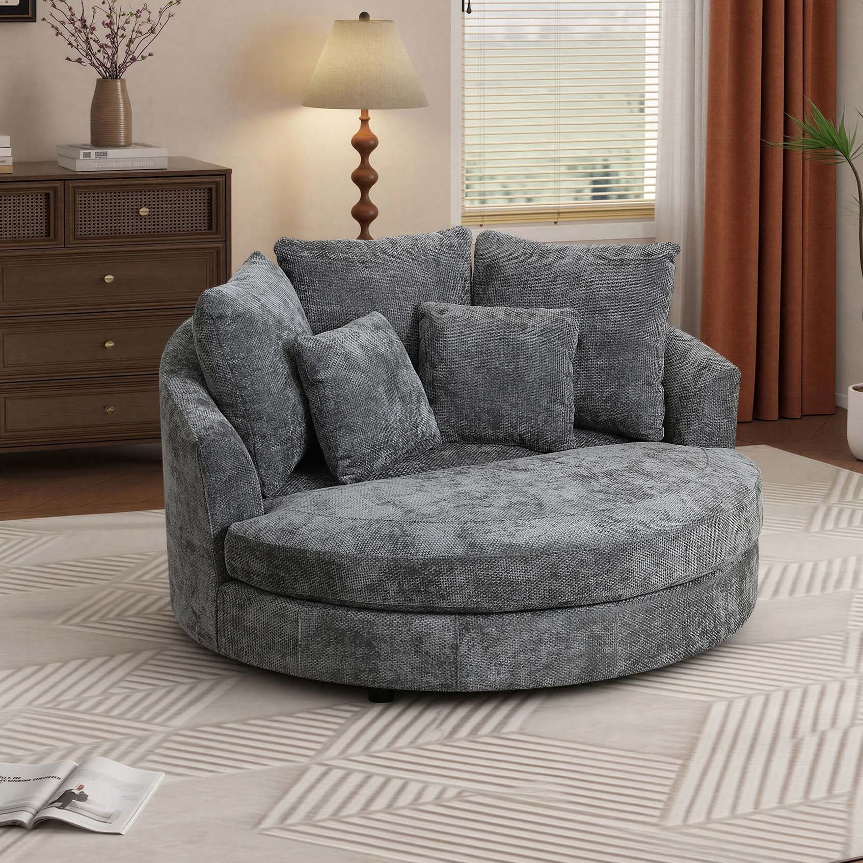 59.8''W Modern Oversized Sofa Chair, Round Accent Barrel Chair With 5 Pillows