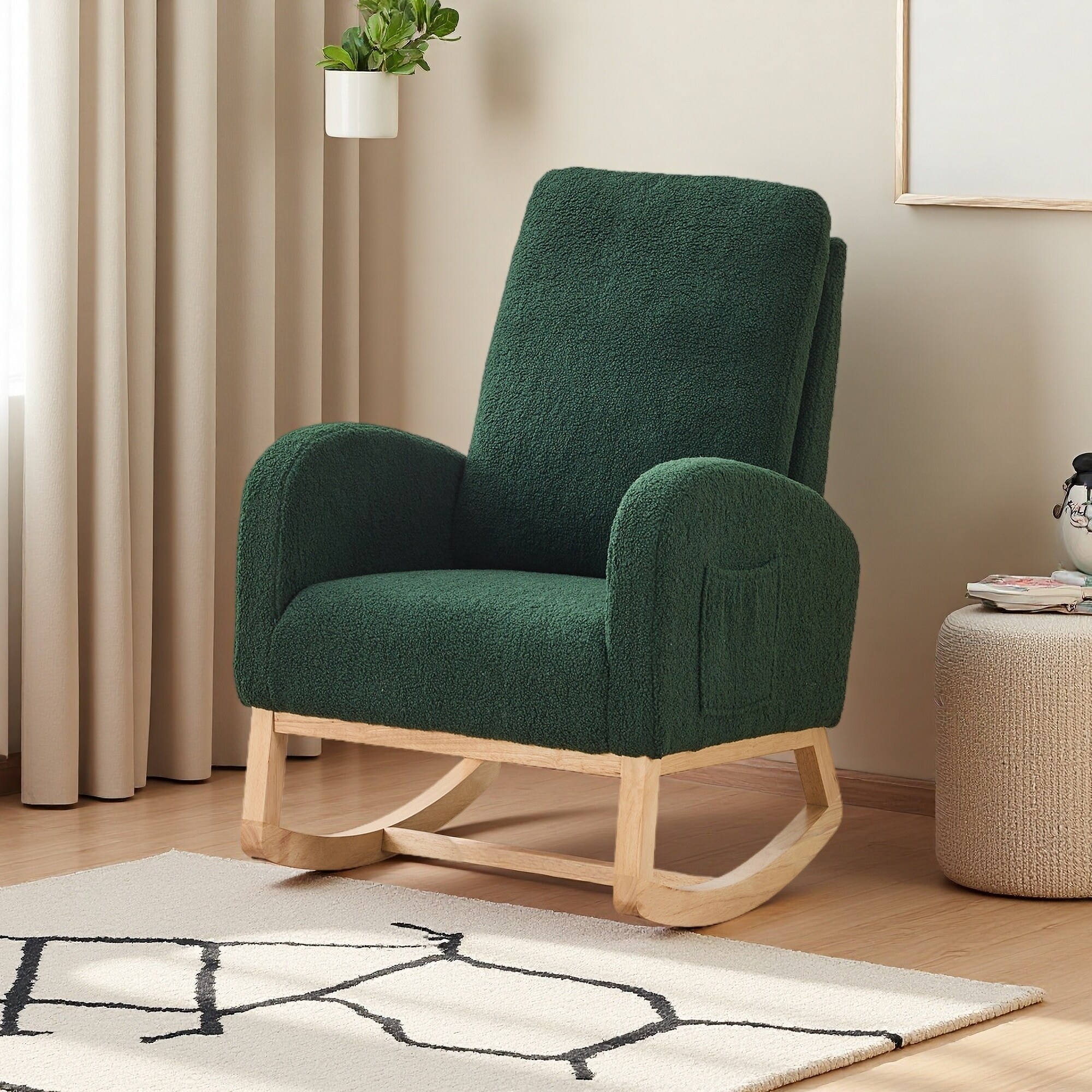27.2"W Sherpa Rocking Armchair with High Back, Side Pocket & Rubber Wood Legs for Living Room/Bedroom