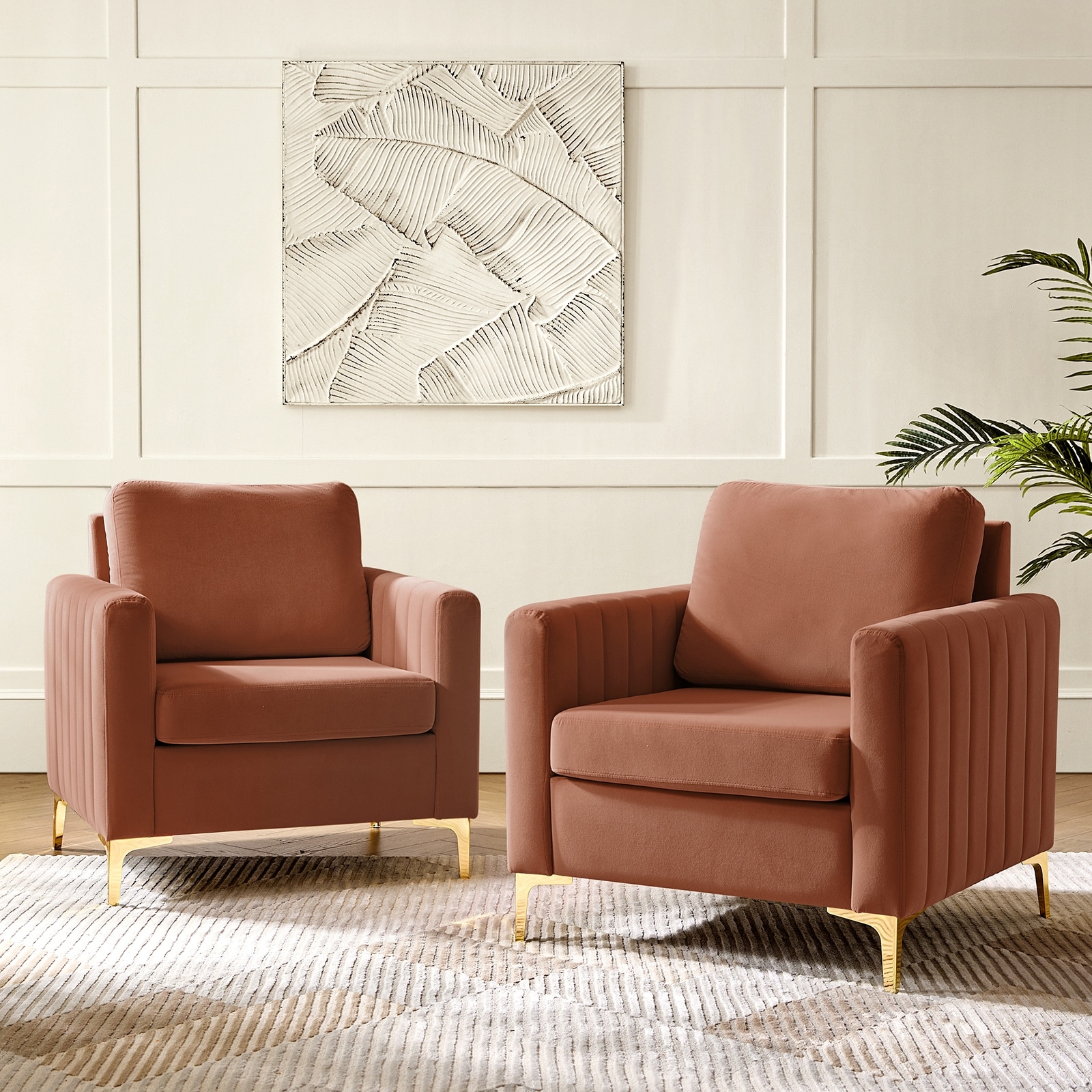 Mid-Century Velvet Accent Chair with 1 Pillow Metal Legs for Living Room