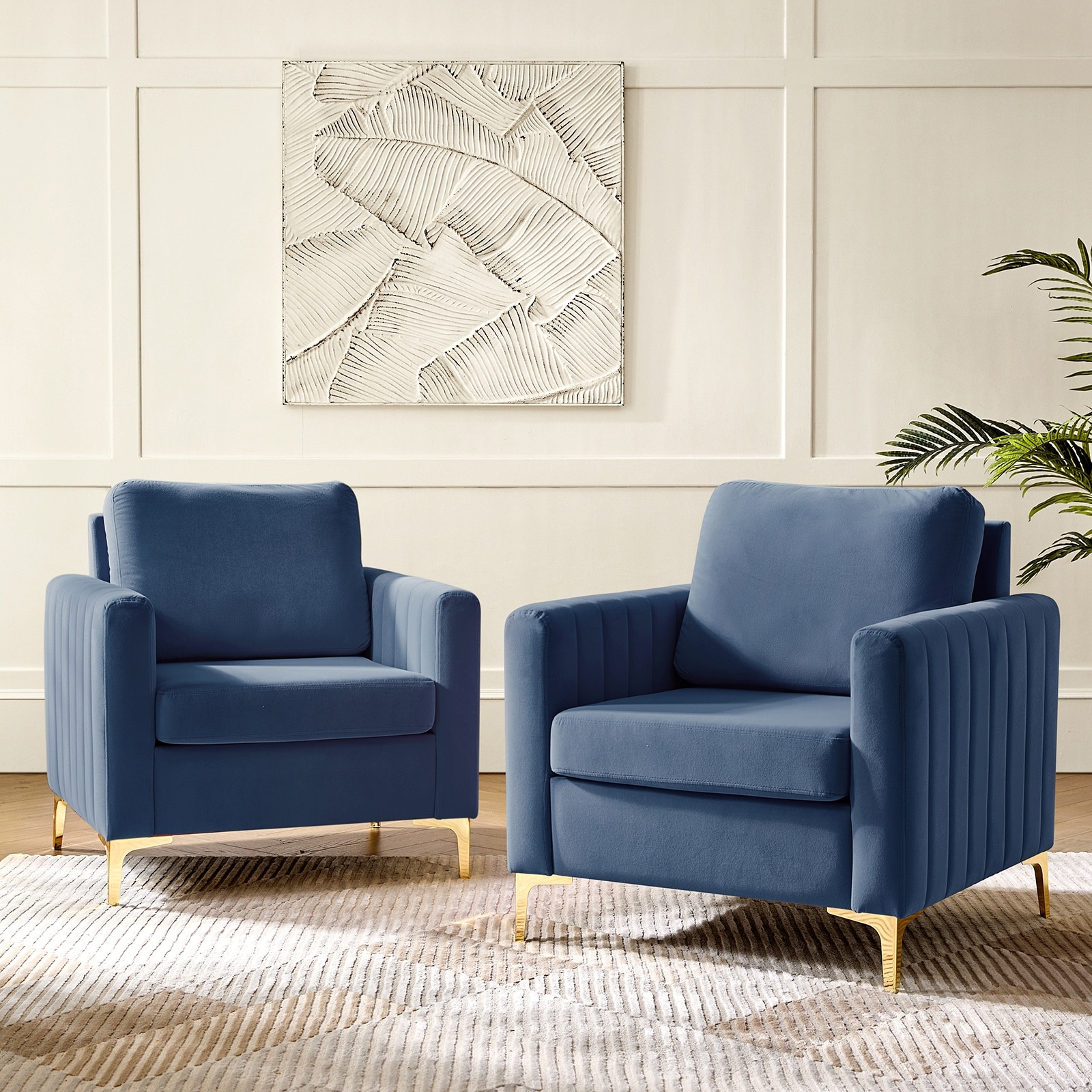 Ganymedes Modern Velvet Accent Arm Chair with Golden Legs and Removable Cushion by HULALA HOME