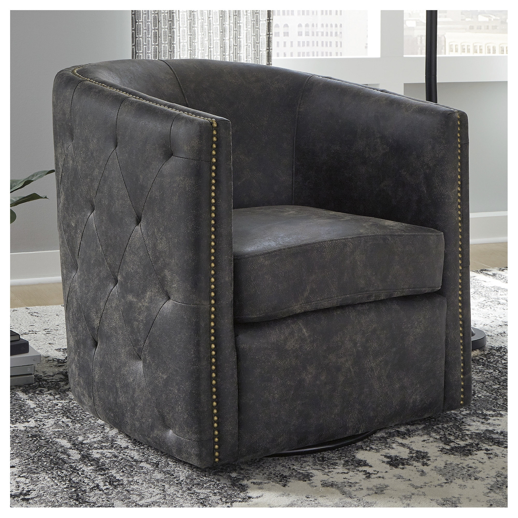Brentlow Distressed Black Swivel Chair - 28.75" W x 31" D x 31.5" H