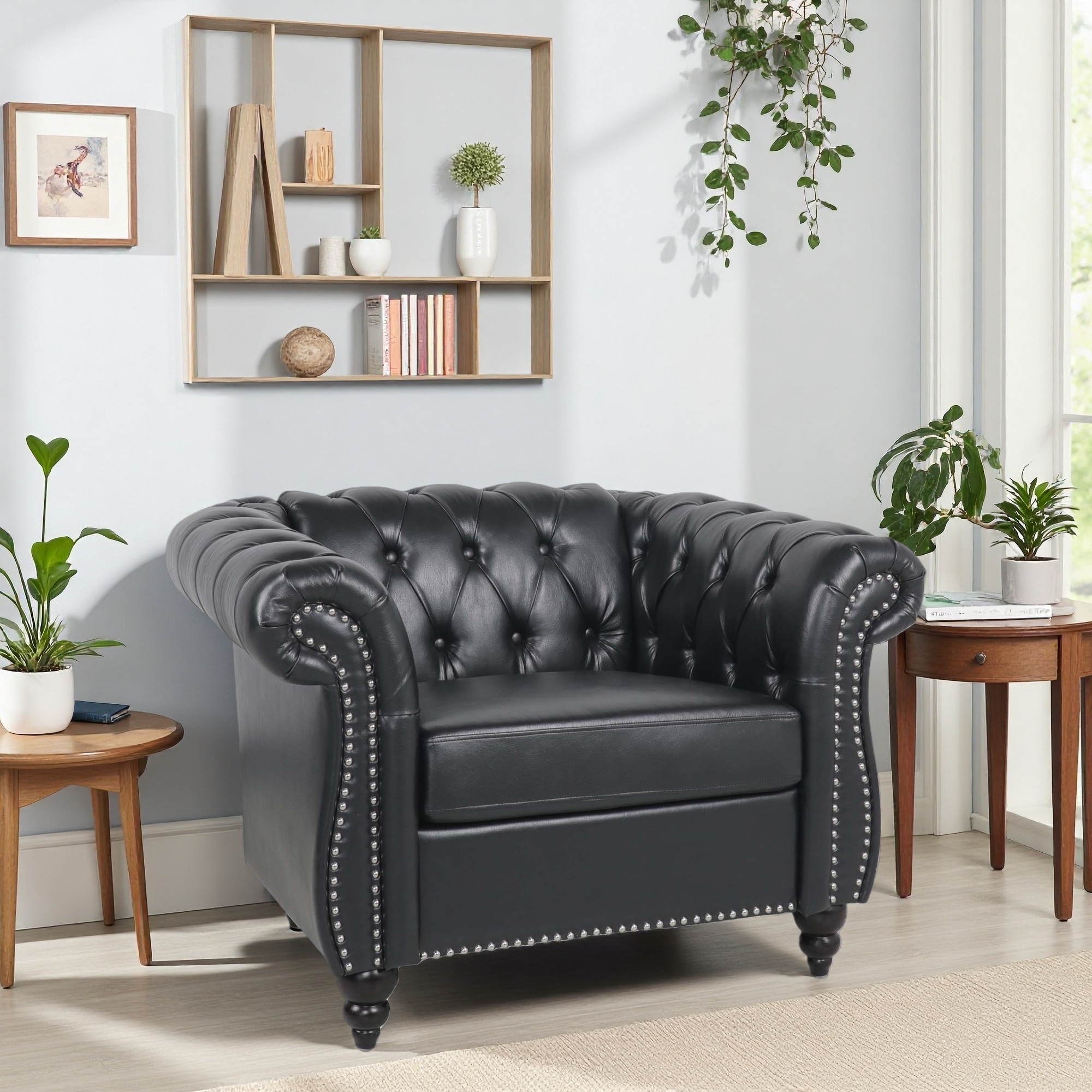 PU Sofa Chair with Pocket Springs and Birch Wood Legs