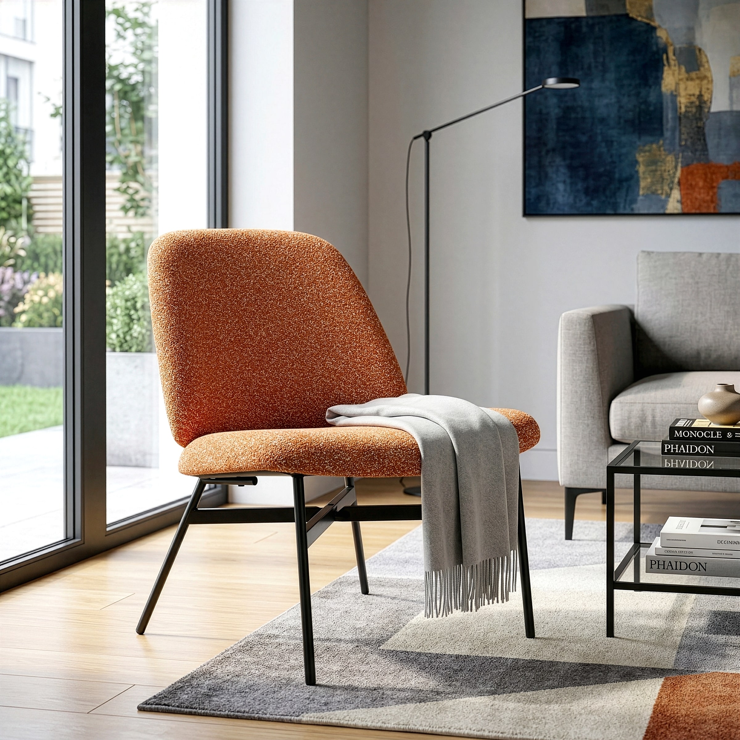 Belhonor Orange Fabric Accent Chair with Black Metal Legs